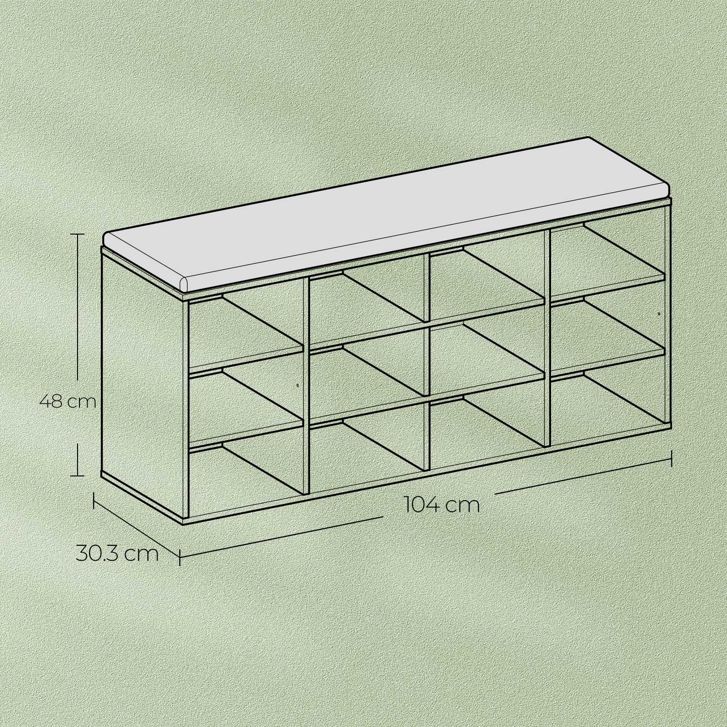 Size: 30.3 x 104 x 48 cm (D x W x H)
