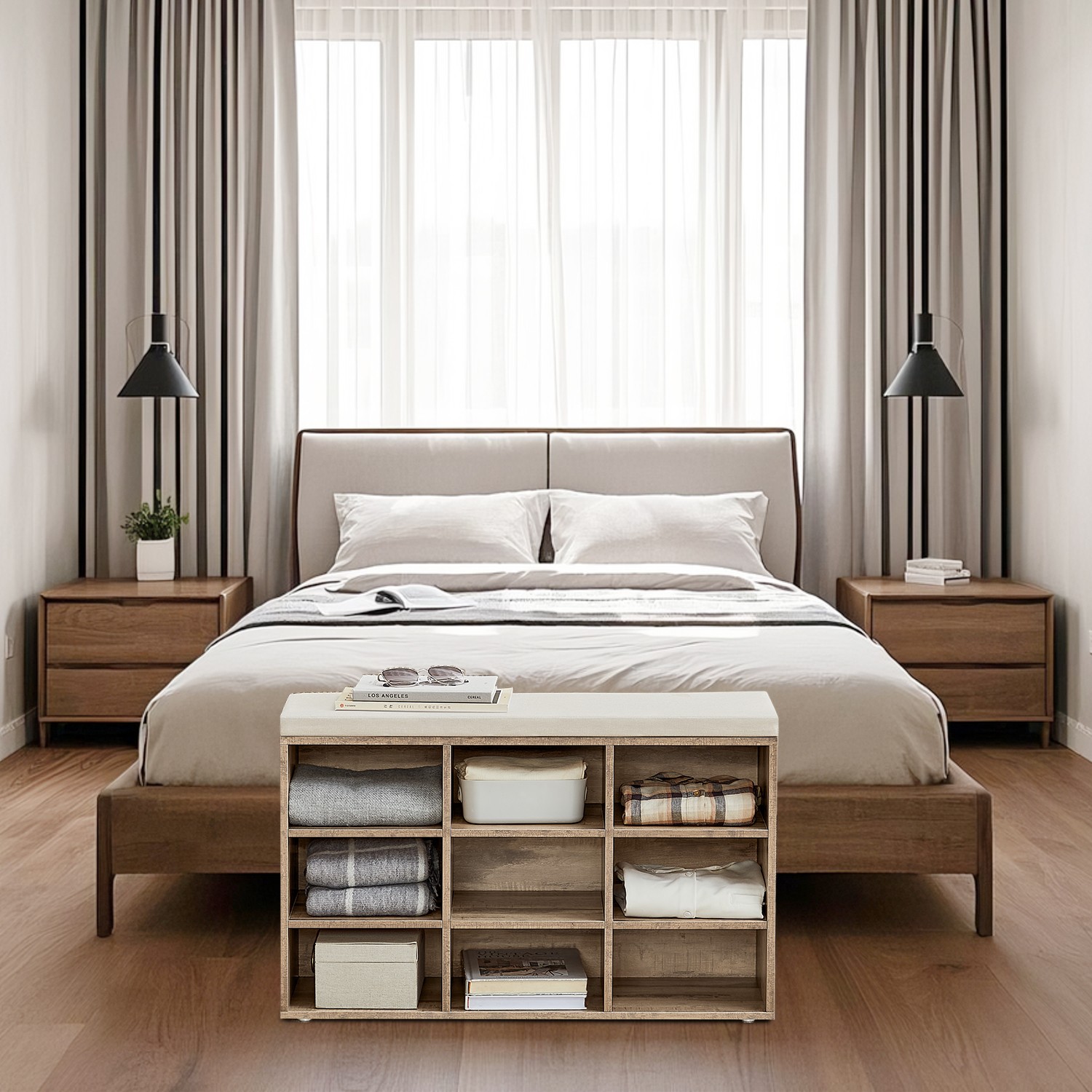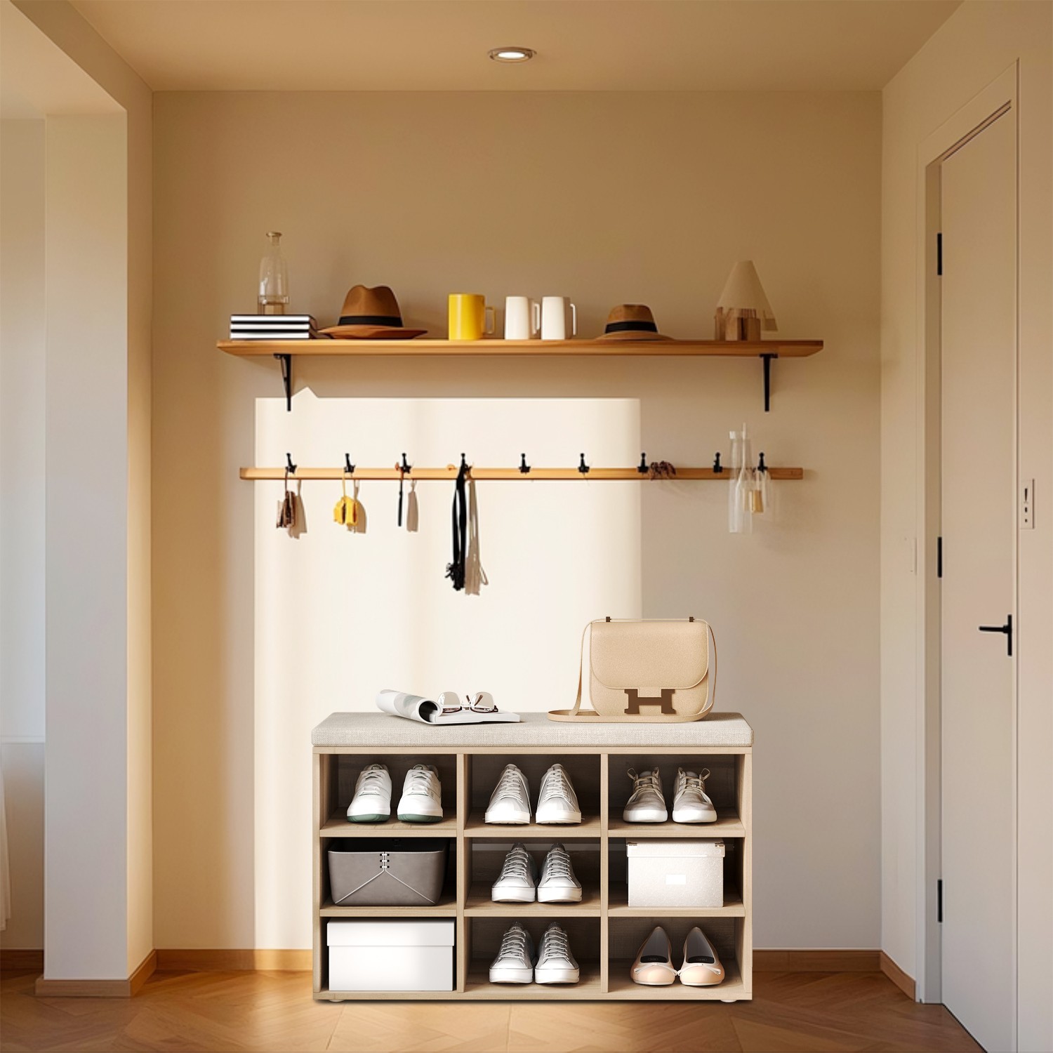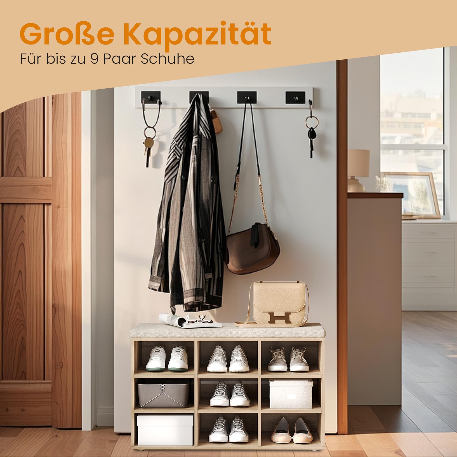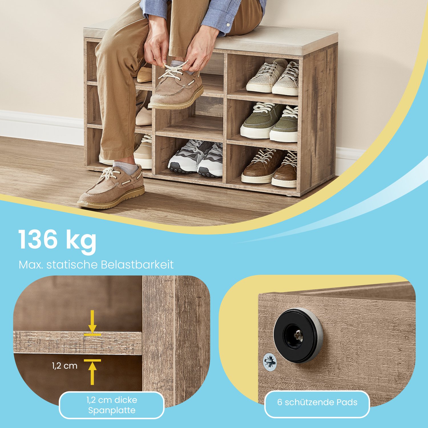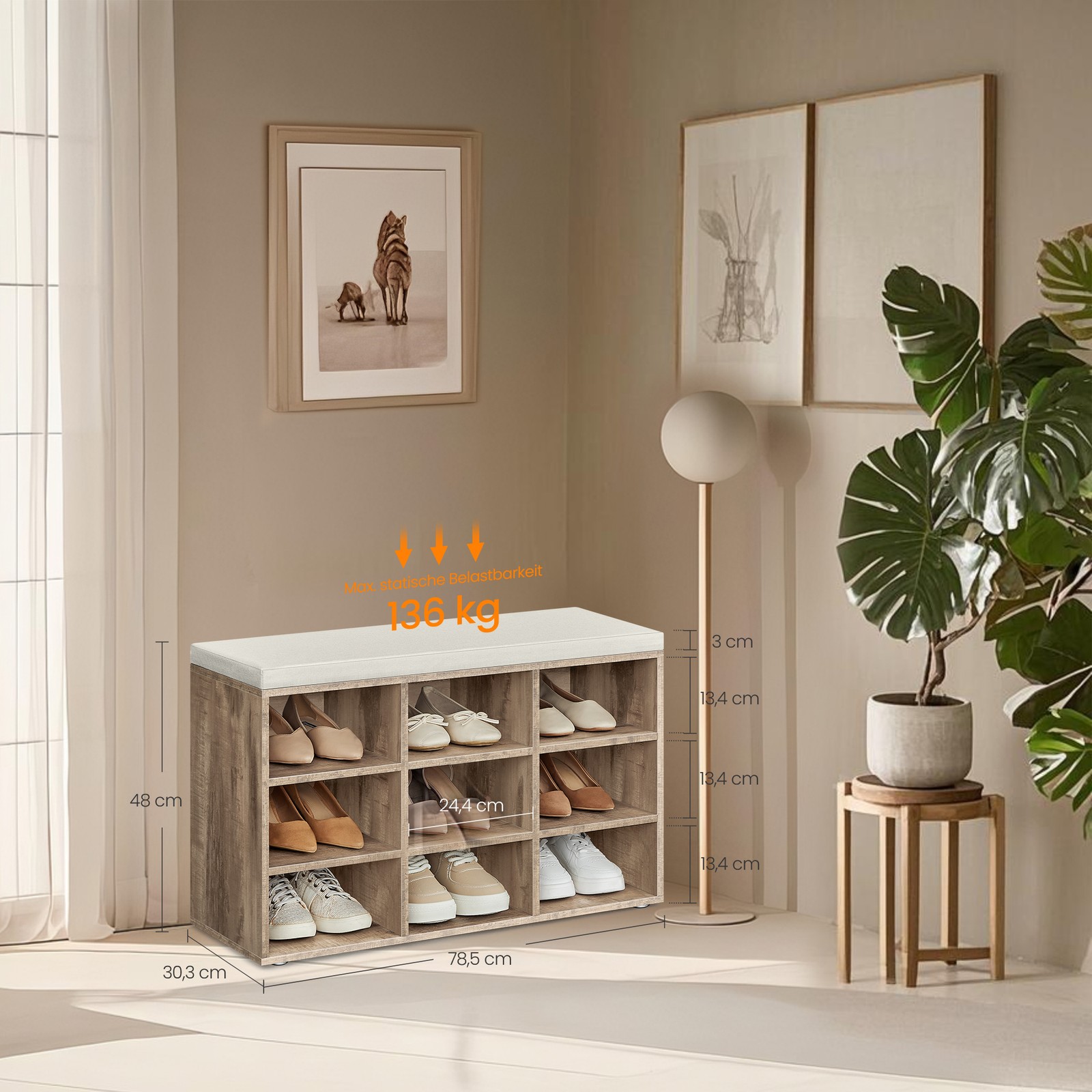 VASAGLE shoe bench, shoe rack with seat, bench with storage space, cushion, 9 compartments, adjustable shelves, for living room, hallway, 30.3 x 78.5 x 48 cm, vintage brown LHS009B01