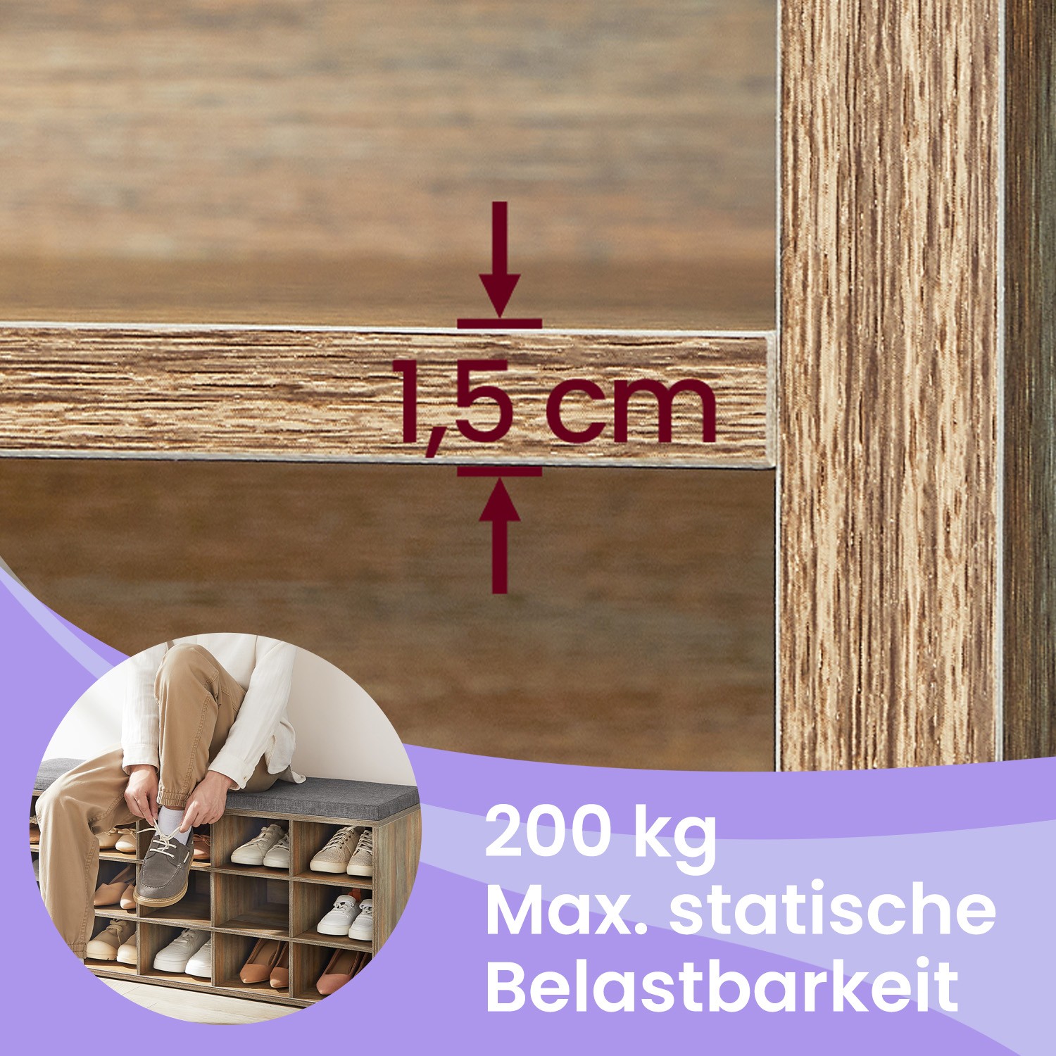 – Material: chipboard, foam, imitation linen cover
