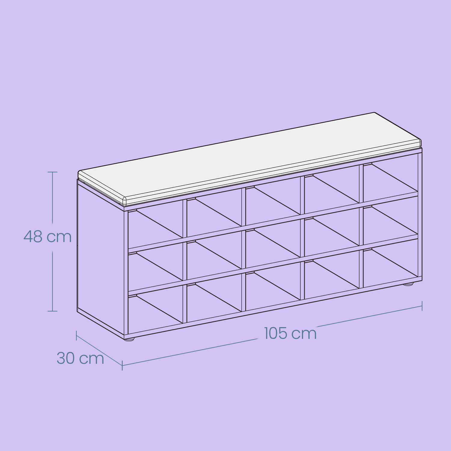 – Dimensions: 30 x 105 x 48 cm (D x W x H)
