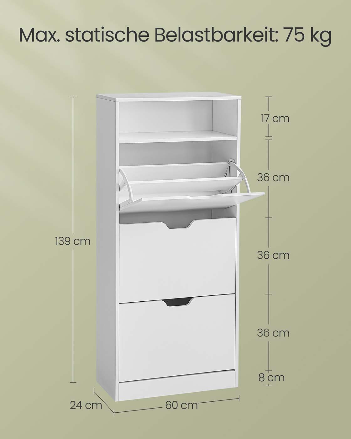 VASAGLE shoe cabinet with 3 flaps, shoe tipper, shoe rack, shoe storage, open compartment, adjustable divider, for 14-18 pairs of shoes, hallway