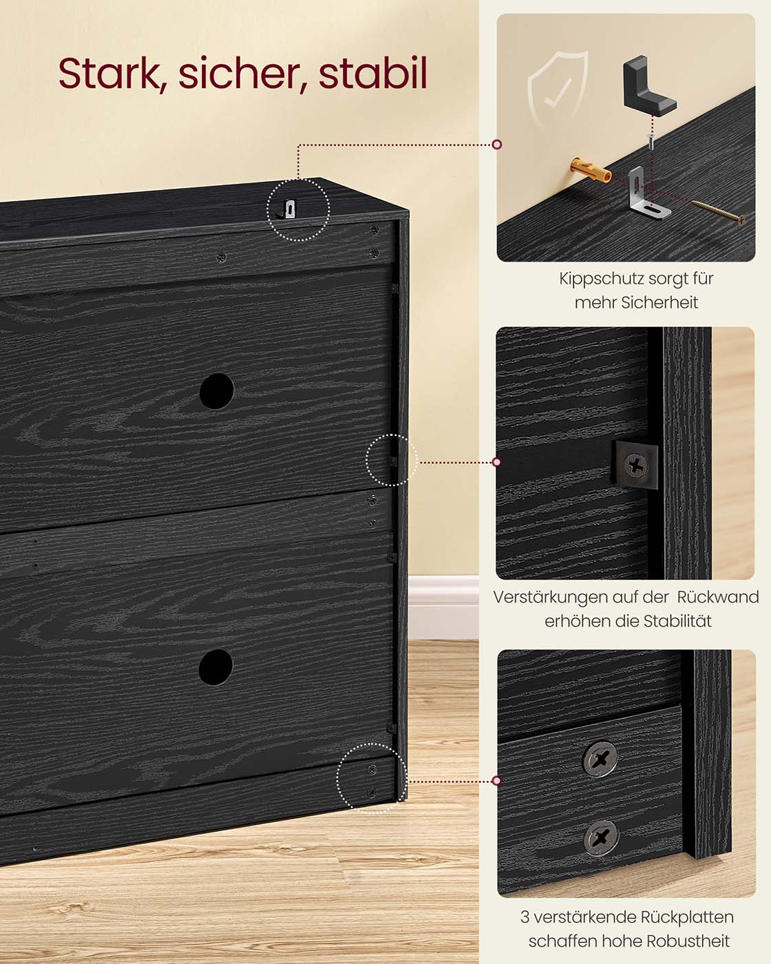 VASAGLE Shoe cabinet 4 flaps, shoe tipper, shoe rack, shoe storage, adjustable partition, for 16-28 pairs of shoes, hallway, 24 x 105.5 x 82.7 cm, ebony black LBC035B01