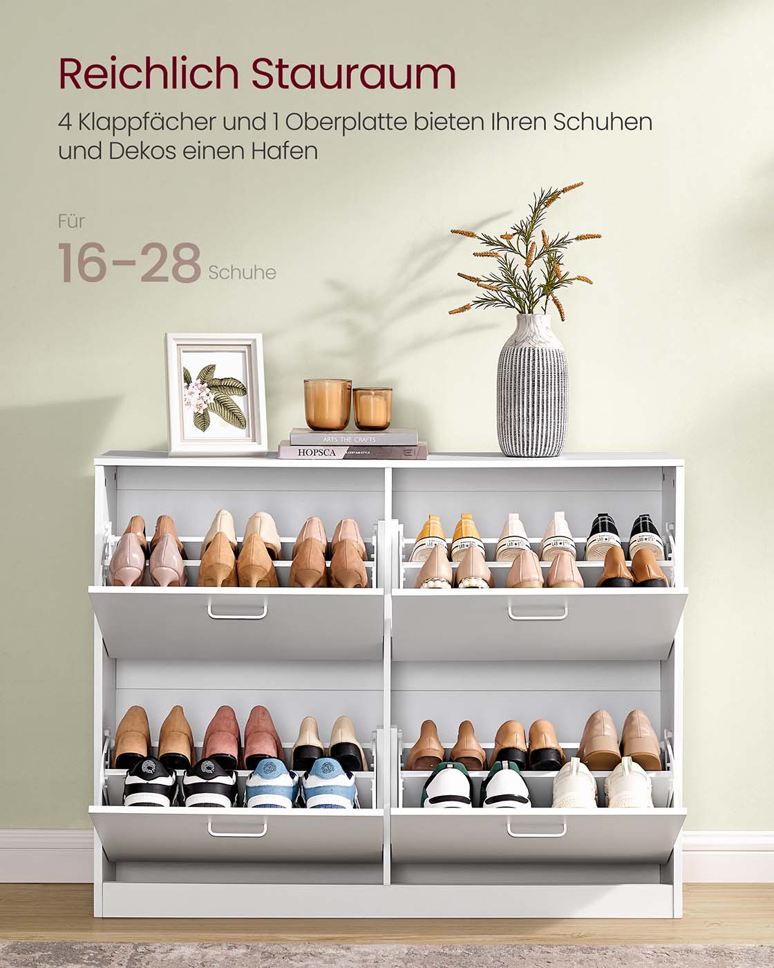 VASAGLE Shoe cabinet 4 flaps, shoe tipper, shoe rack, shoe storage, adjustable partition, for 16-28 pairs of shoes, hallway, 24 x 105.5 x 82.7 cm, ebony black LBC035B01