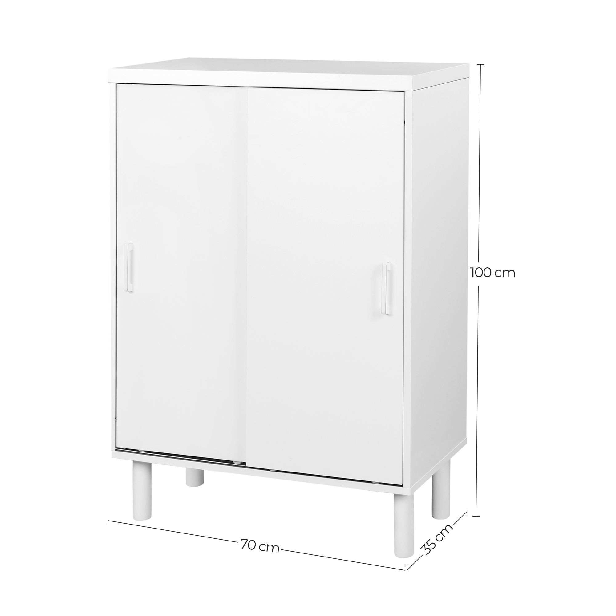 Product details: – Color: White – Material: Chipboard, steel – Size: 70 x 35 x 100 cm (L x W x H) – Weight: 23.7 kg Scope of delivery: – 1 x storage cabinet – 1 x accessory package – 1 x instructions