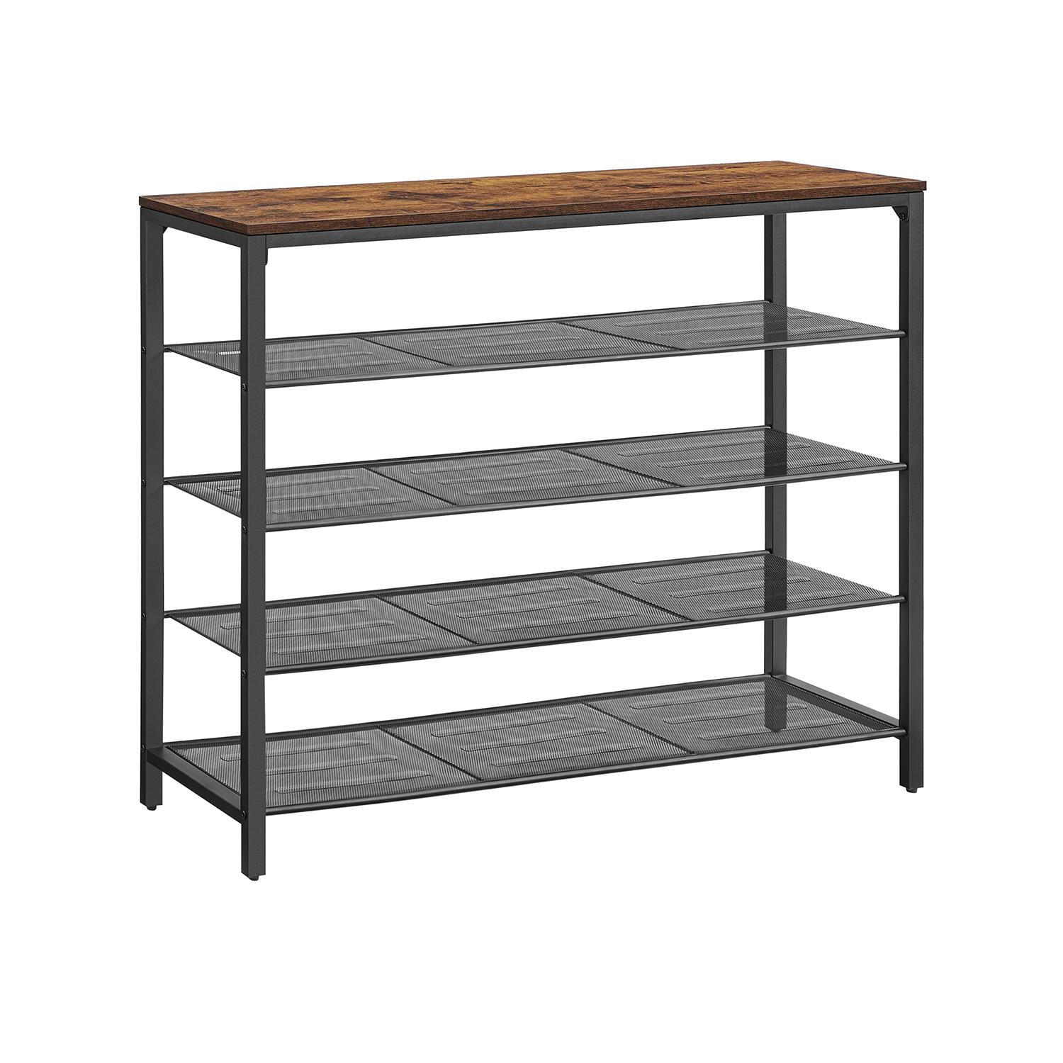 VASAGLE Shoe rack, shoe storage with 5 mesh levels and generous surface area, for the entrance area, hallway, metal frame, industrial design, vintage brown-black LBS016B01