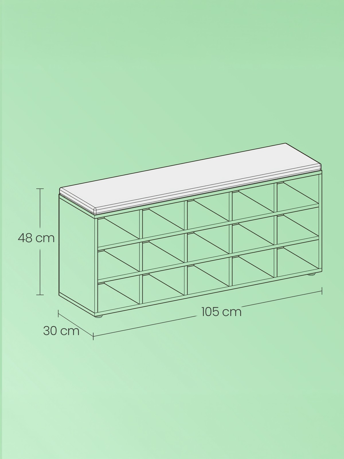 VASAGLE shoe bench, bench, shoe rack with seat, with cushion and 15 compartments, storage rack, for the hallway, holds up to 200 kg, white-gray LHS15WT