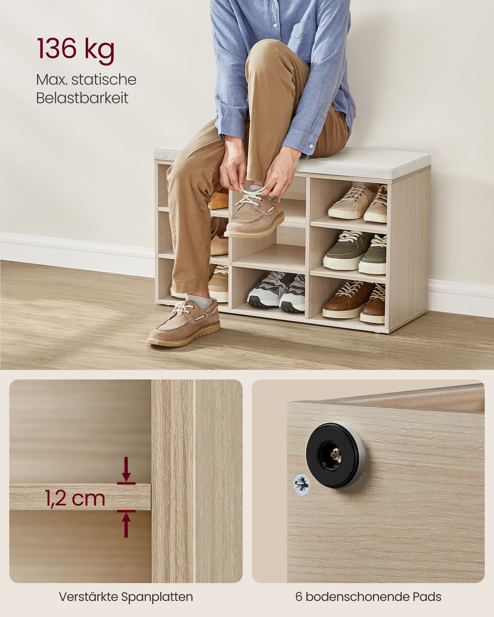 Be the first to review “VASAGLE shoe rack with seat 30.3 x 78.5 x 48 cm natural beige”