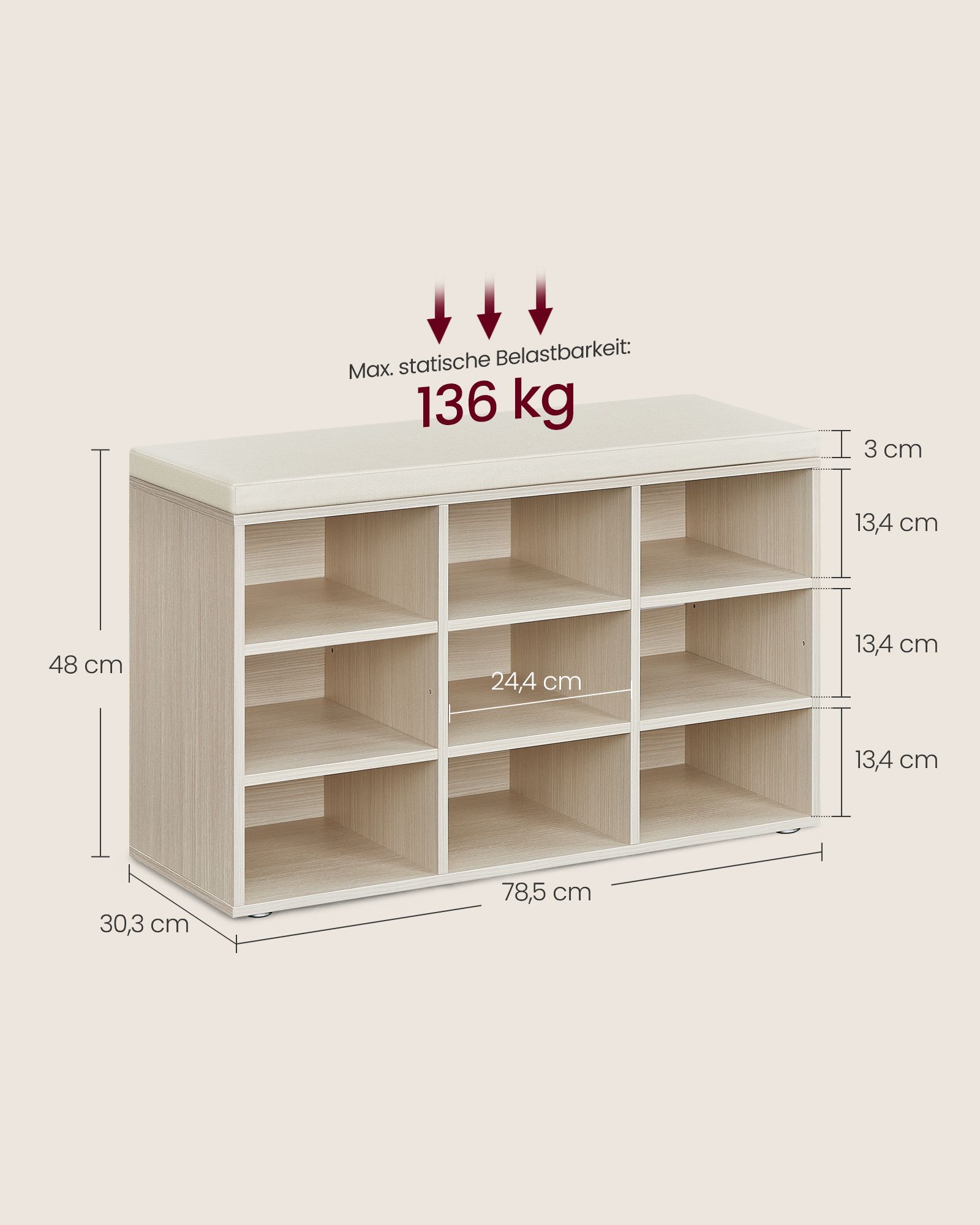 VASAGLE shoe rack with seat 30.3 x 78.5 x 48 cm natural beige