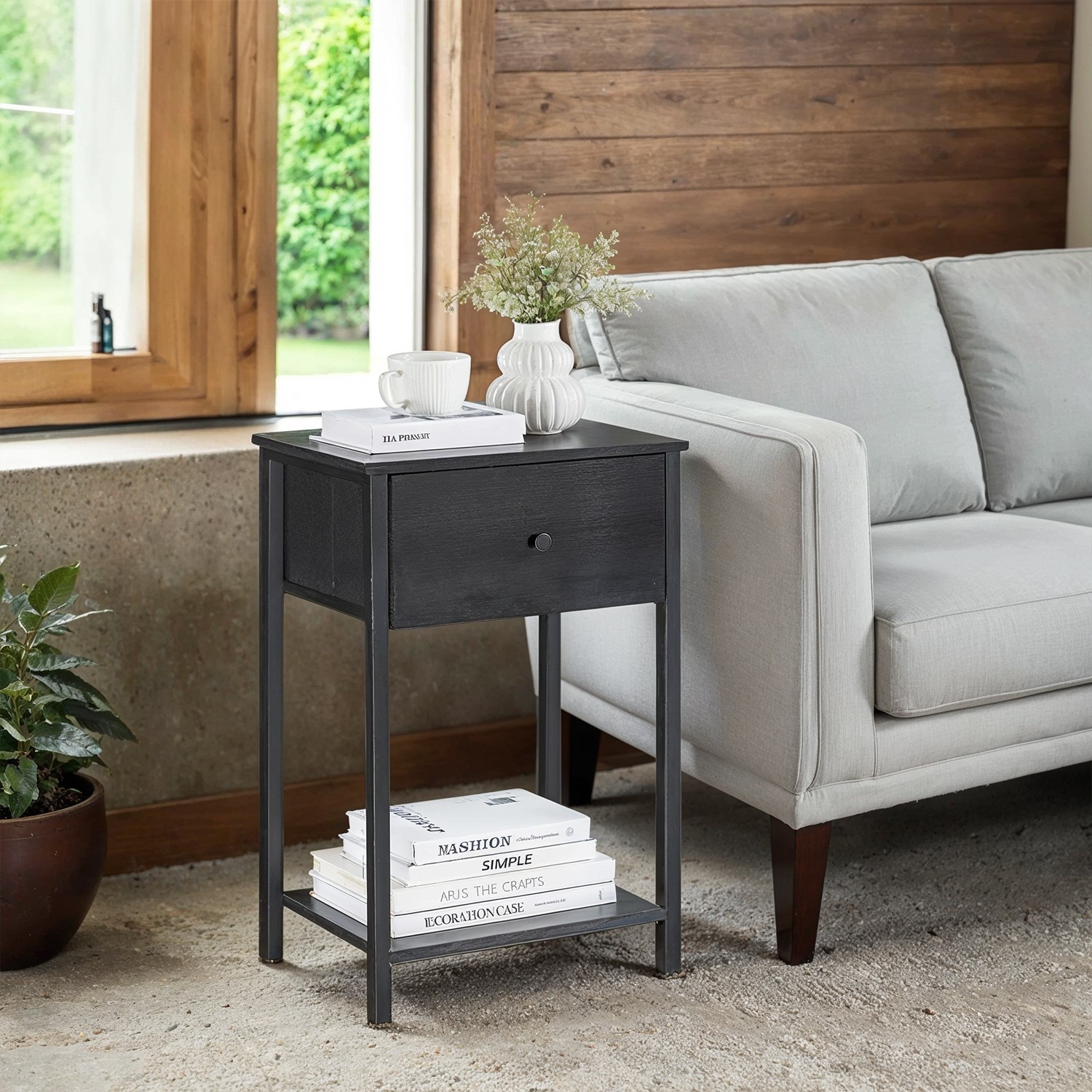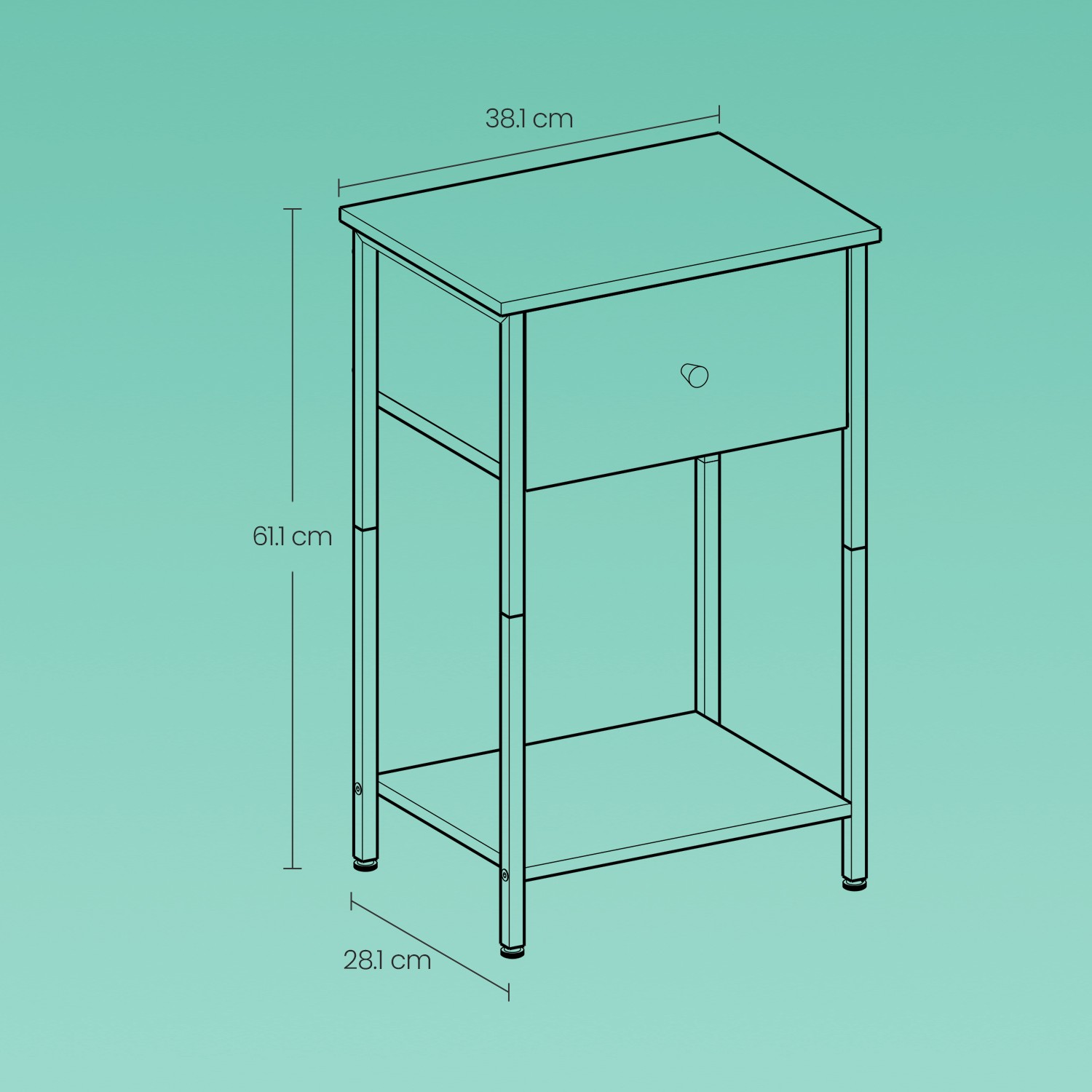 VASAGLE Bedside table, side table with fabric drawer, 61 cm high bedside cabinet, with shelf, for living room, bedroom, black LGS021B21