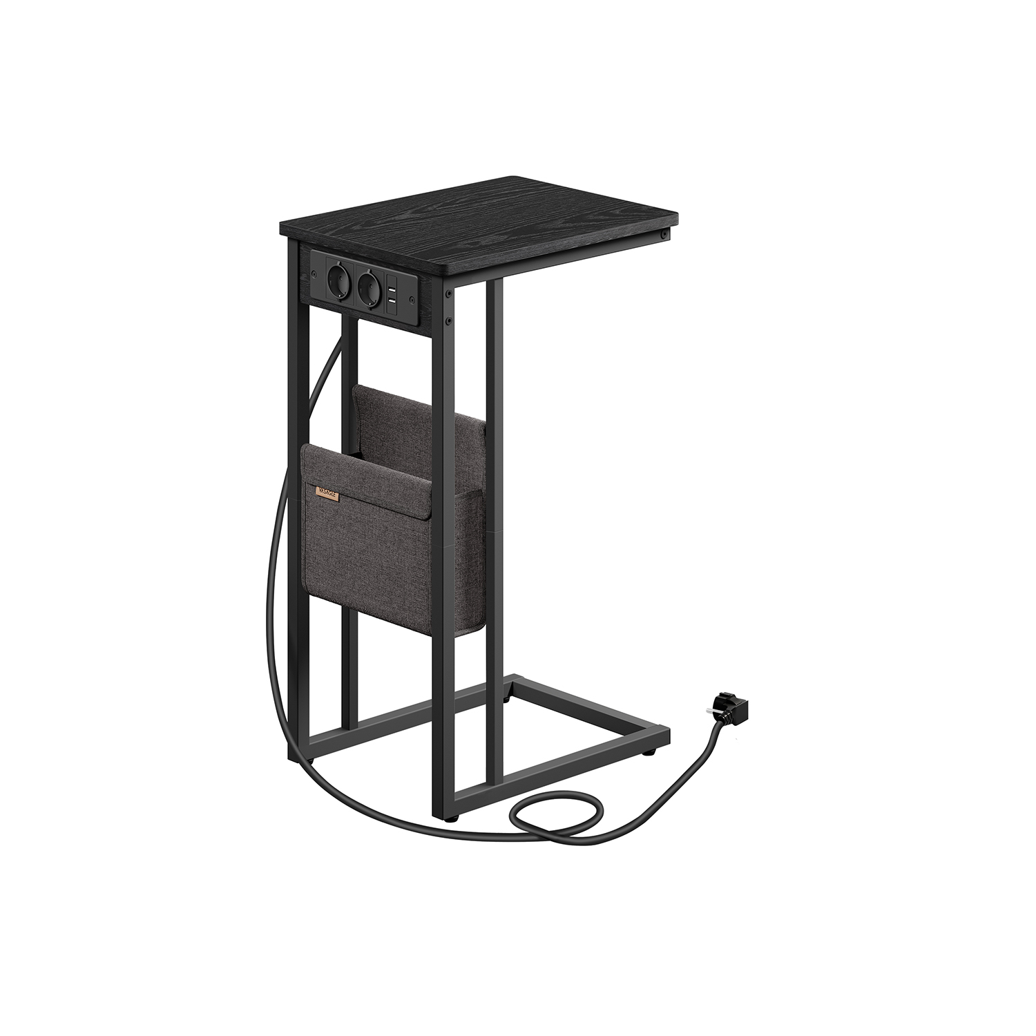 VASAGLE Side Table, Nightstand with Power Outlets, C Shape, Coffee Table for Small Spaces, 2 USB Ports, 2 AC Outlets, Storage Bag, Adjustable Feet, Ebony Black LET356B02V1