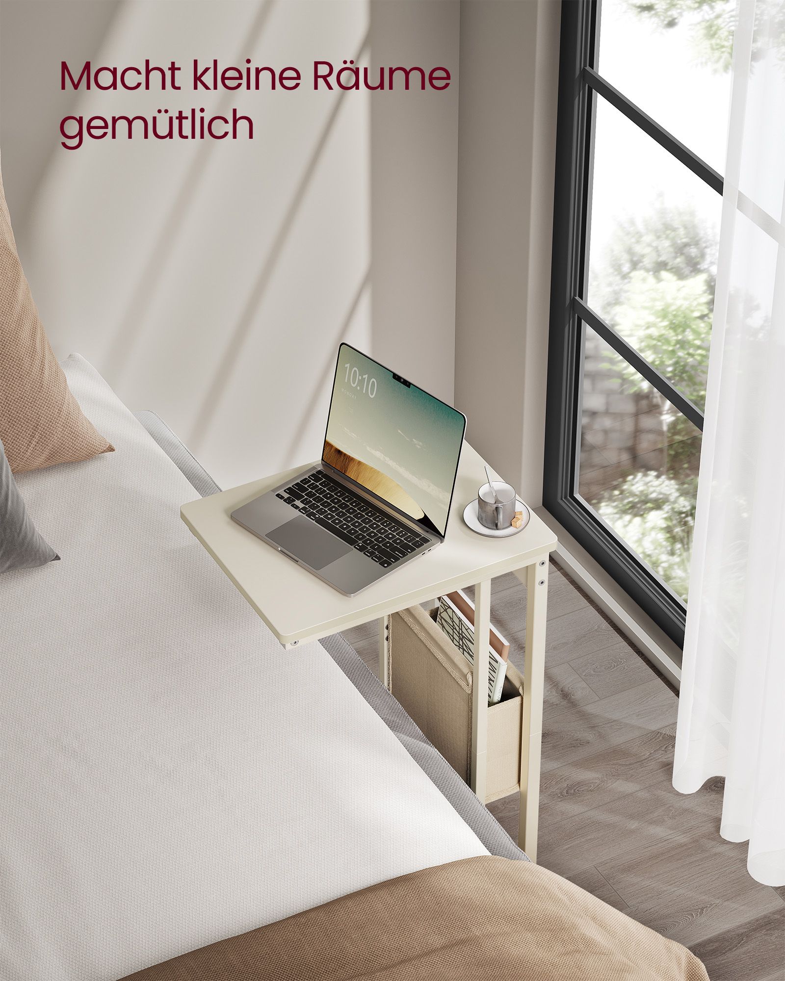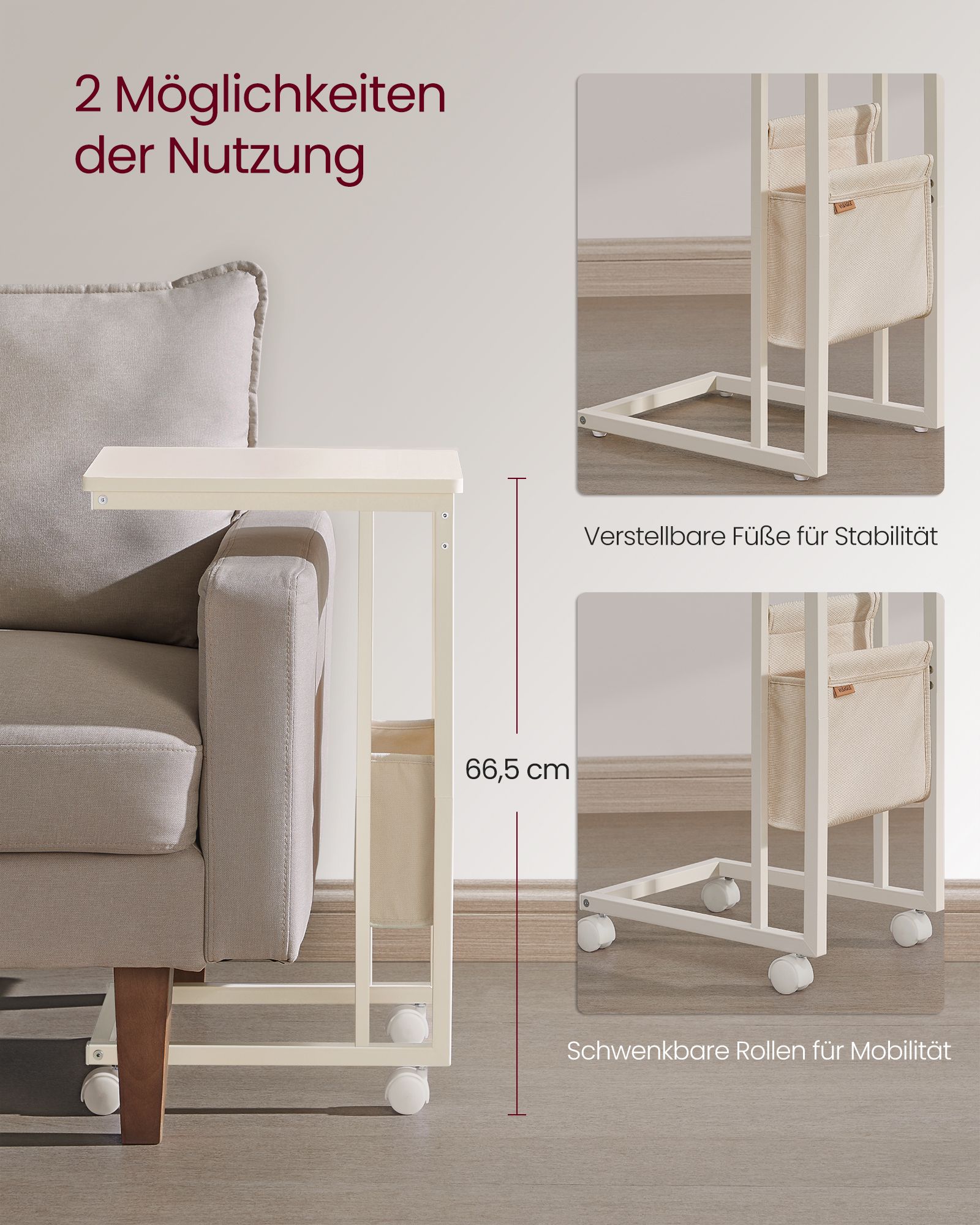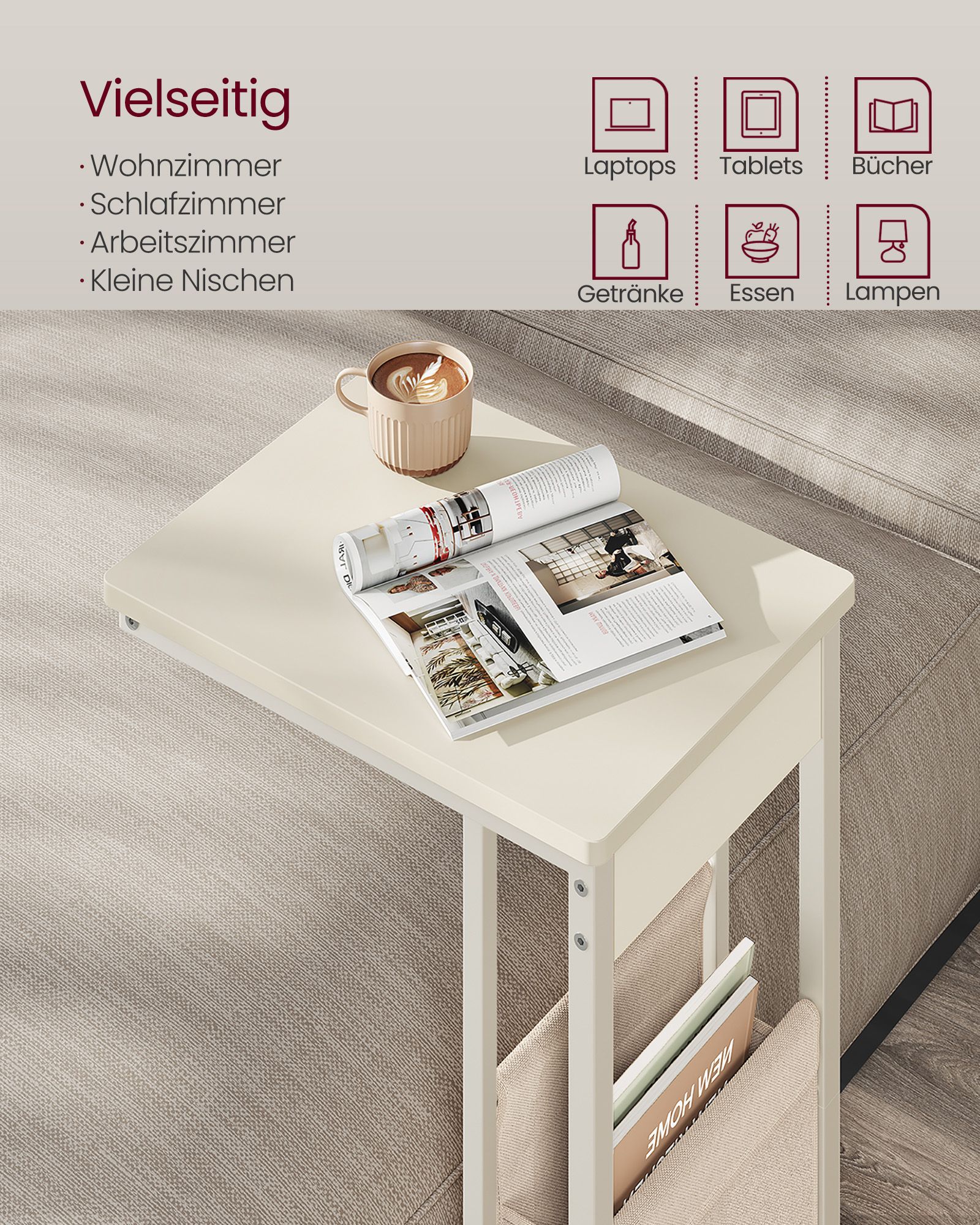 VASAGLE Side Table C-Shaped with Storage Bag Cream White