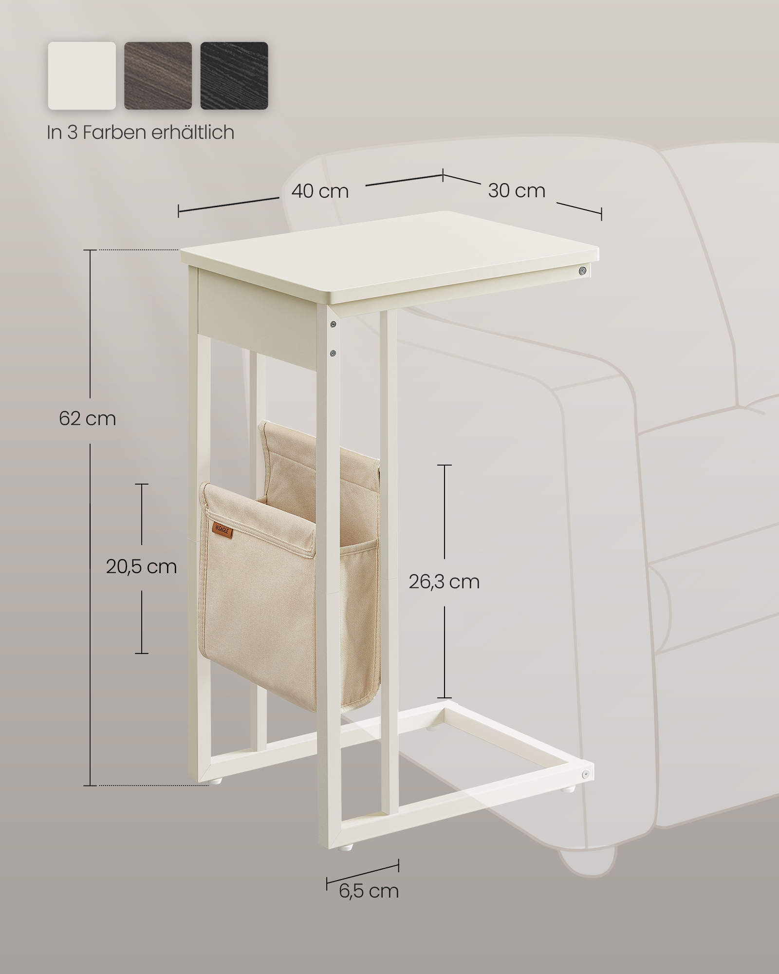 Be the first to review “VASAGLE Side Table C-Shaped with Storage Bag Cream White”
