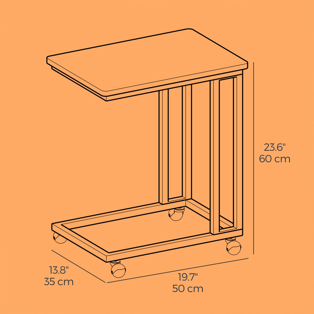 VASAGLE – This stands for an imaginative combination of functionality, durability, and stylish vintage designs. If you want to give your rooms an individual touch and an antique look, you can achieve impressive effects with this furniture series. Vintage side table with steel accents This sofa table on casters is a real asset, and not just for lovers of the romantic vintage style. Fans of trendy industrial design can also embellish their home with this piece of furniture, as the frame is made of matte black steel. Look behind the facade However, even the most beautiful appearance is of no use to a piece of furniture if it lacks functionality. That’s why the chipboard tabletop can hold up to 25 kg. In addition, our side table has four smooth-running casters that allow you to slide the piece of furniture under your sofa or bed. This means that your coffee, newspaper, or remote control are always within reach. Or why not treat your loved one to a delicious breakfast in bed? Complete your interior design with vintage furniture from VASAGLE! Product details: – Color: Vintage brown-black – Material: Chipboard, steel frame, metal casters – Product dimensions: 50 x 55 x 35 cm (W x H x D) – Weight: 5.5 kg – Load capacity: 25 kg Scope of delivery: – 1 x side table – 1 x instructions (DE, EN, FR, ES, IT) – 1 x VASAGLE accessory set Notes: – The distance between the frame and the floor is 7 cm. The sofa must therefore be higher than 7 cm at the bottom in order to slide the side table underneath. – Protect the table from direct sunlight, moisture, and water. Avoid any contact with sharp objects.