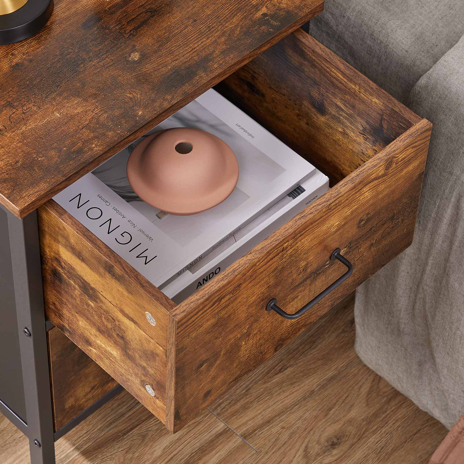 Product details: – Color: Vintage brown-black – Material: Chipboard, steel – Size: 45 x 45 x 55 cm (L x W x H) -Weight: 14.5 kg- Max. static load capacity: 20 kgScope of delivery:- 1 xbedside table- 1 x accessory package- 1 x instructions (DE, EN, ES, FR, IT)VASAGLE Notes:- For safety reasons, children are not allowed to climb on or play with the product.