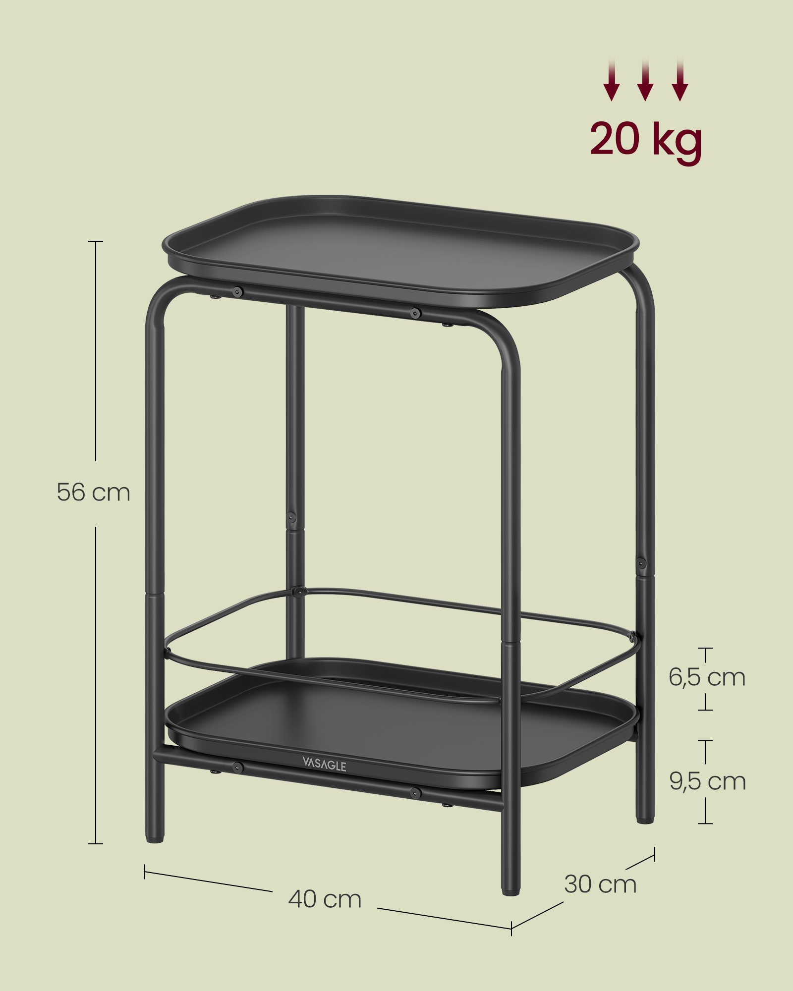 VASAGLE Side table with 2 levels, bedside table, small sofa table, coffee table with storage, modern, for indoor and outdoor use, living room, bedroom, balcony, ink black LET243B01