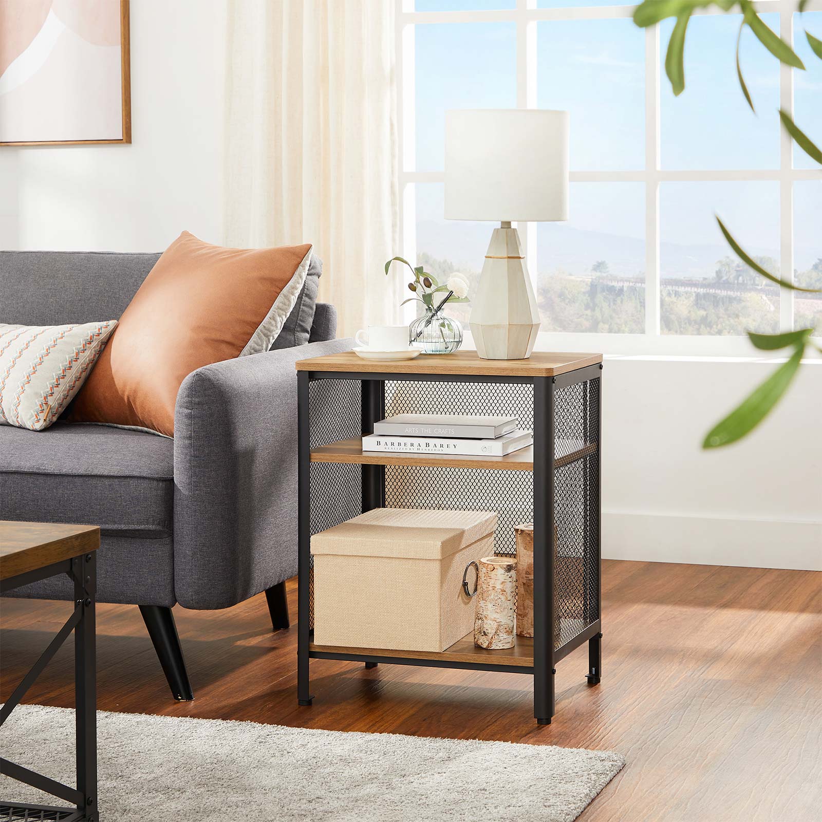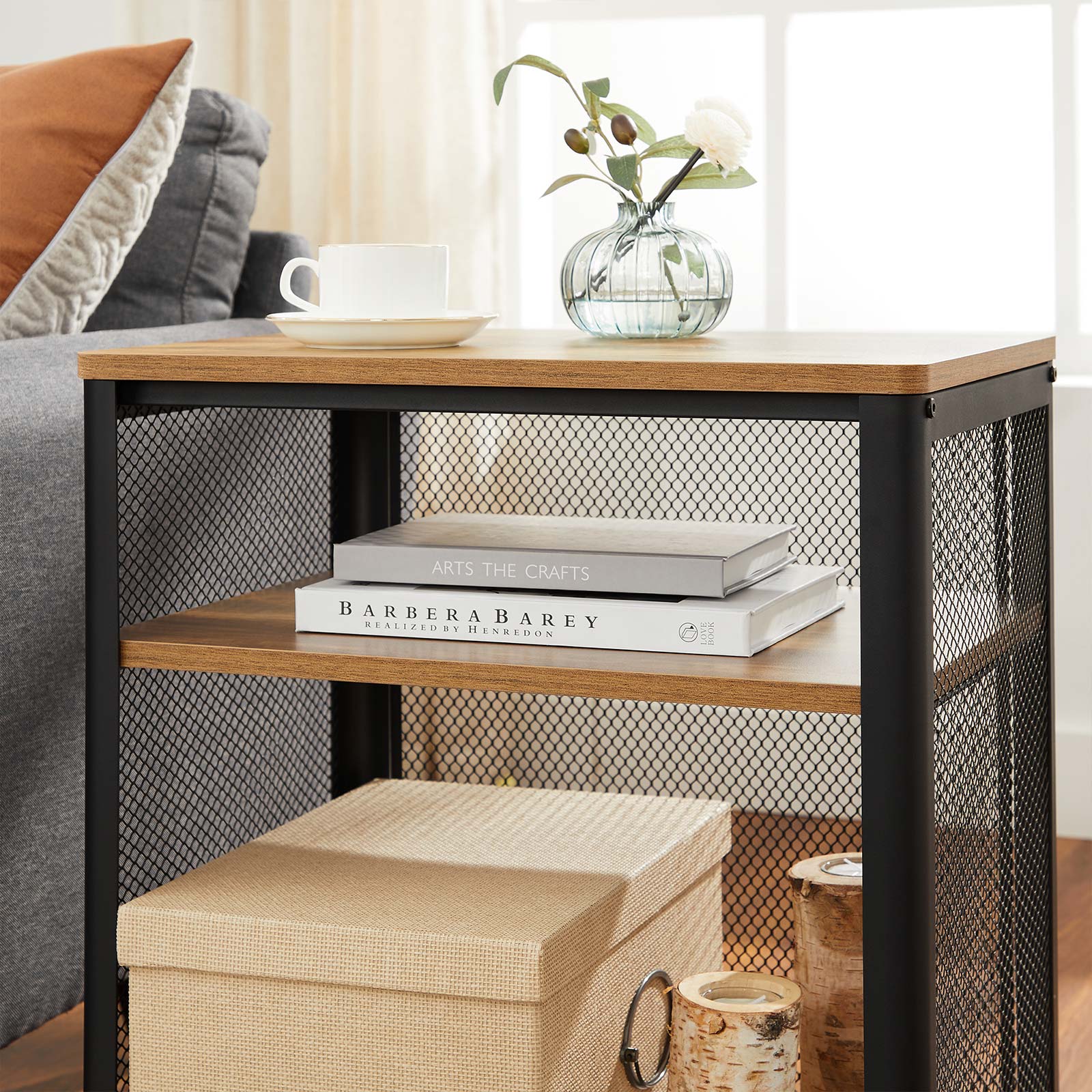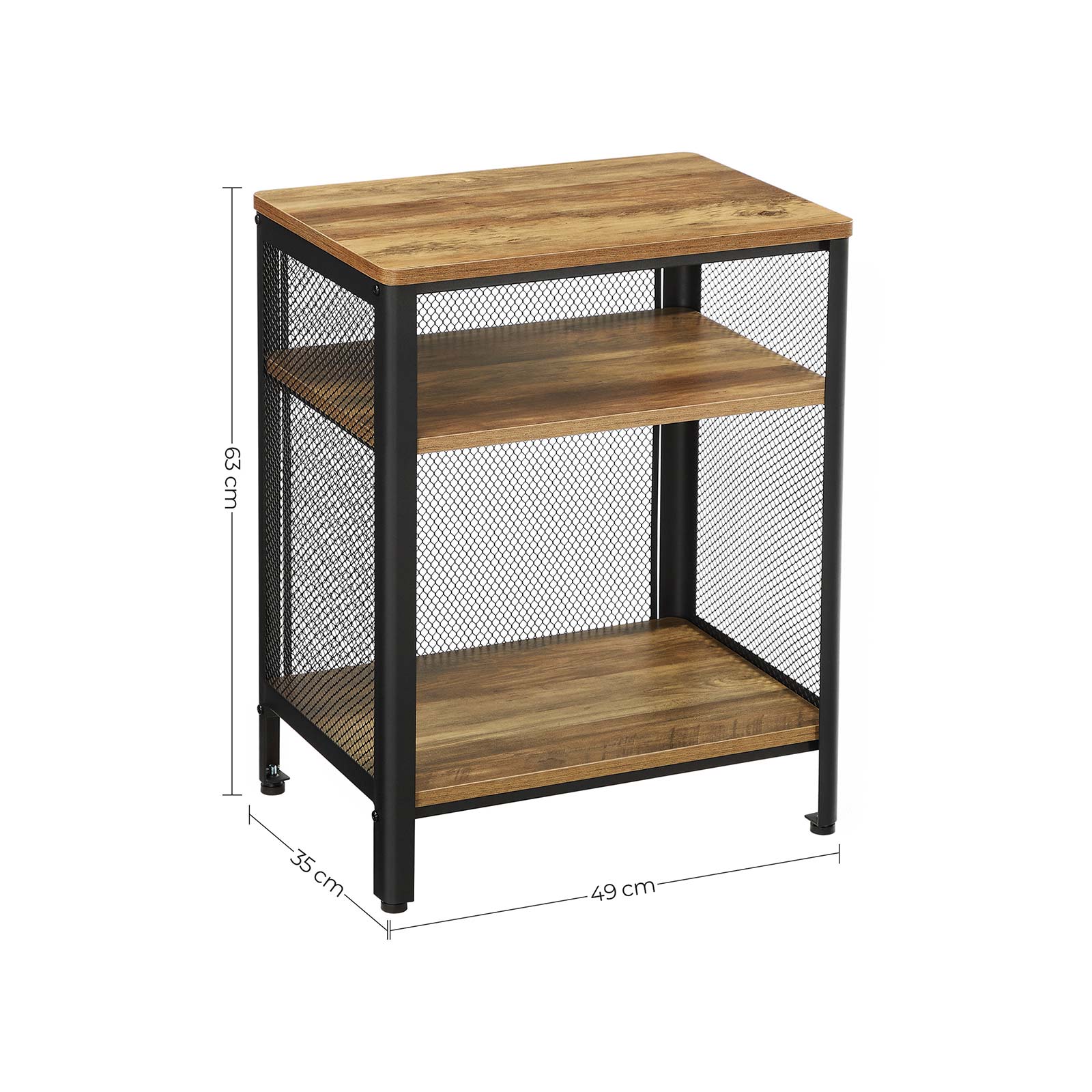 Product details: – Color: Vintage brown-black – Material: Chipboard, steel – Size: 49 x 35 x 60 cm (L x W x H) – Weight: 9.8 kg Scope of delivery: – 1 x Side table – 1 x Accessory package – 1 x Instructions