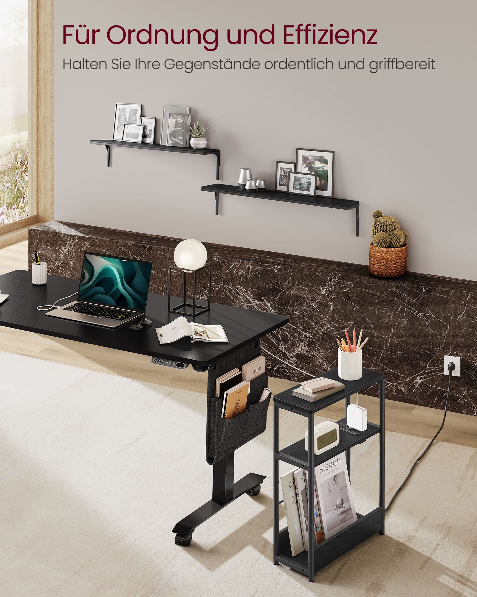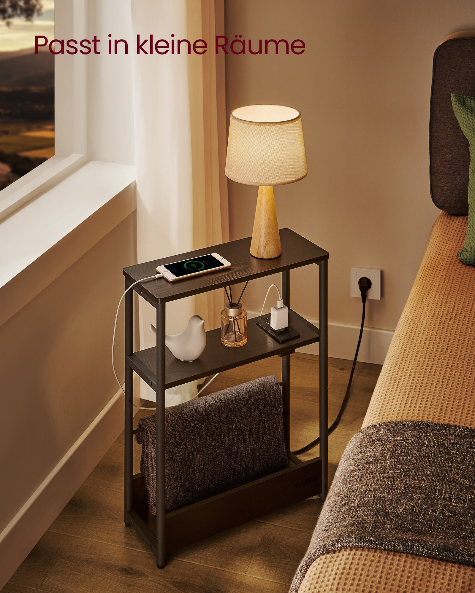VASAGLE narrow side table, bedside table with drawer function, small coffee table, 3 shelves, magazine holder, for living room, bedroom, study