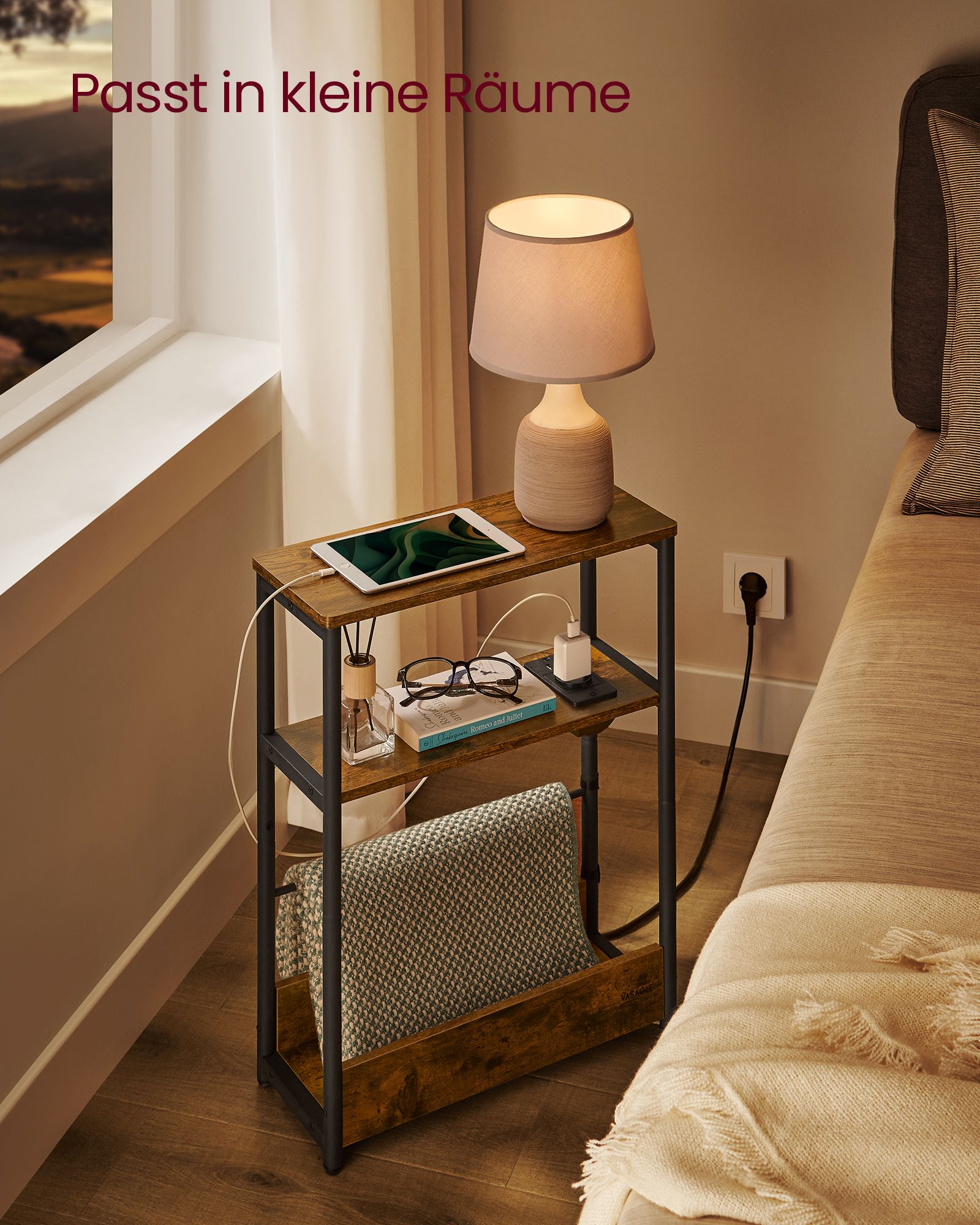 Be the first to review “VASAGLE Side Table with 3 Shelves, Narrow, Vintage Brown-Ink Black”