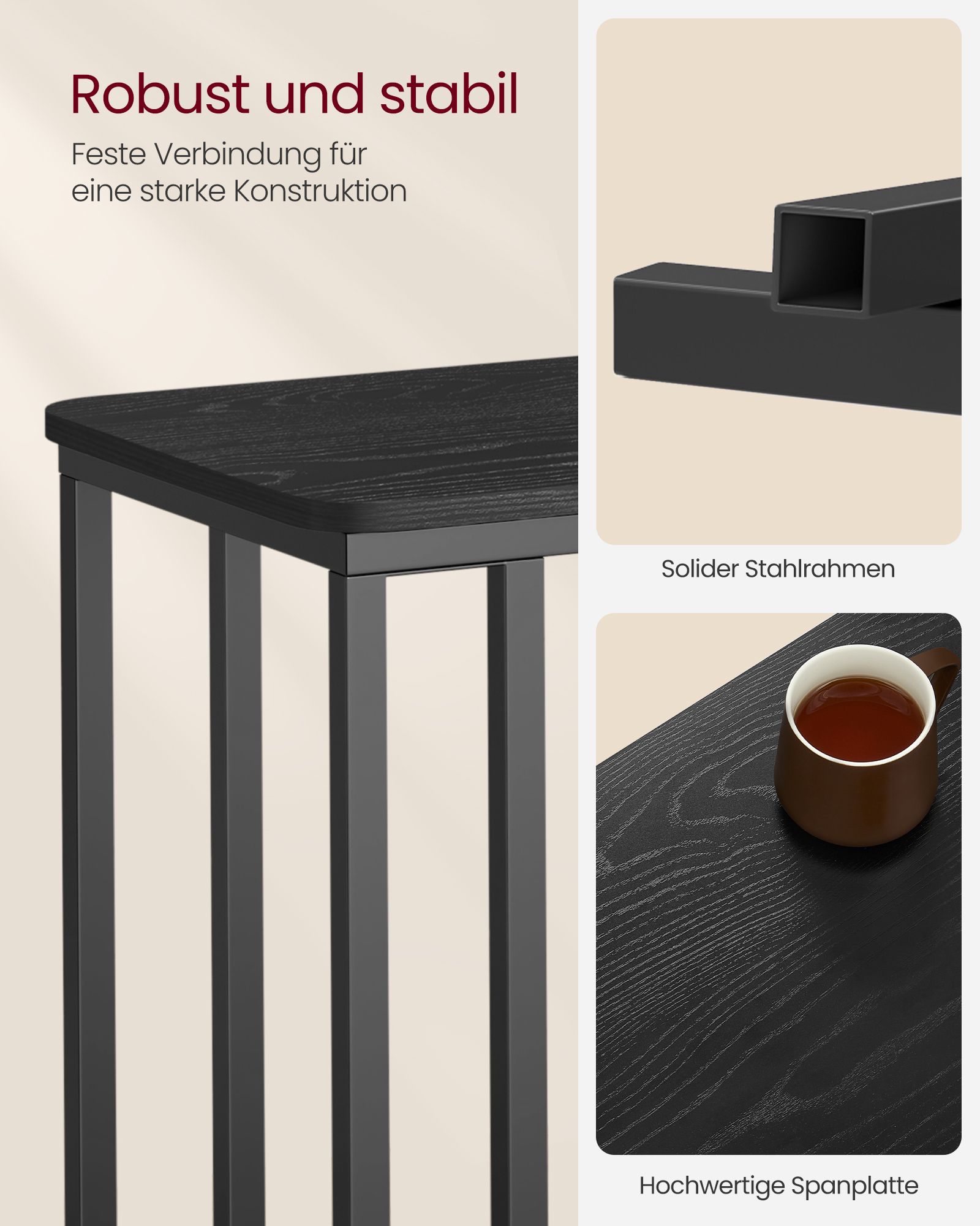 VASAGLE Side Table, Coffee Table with Casters, C-Shaped, Mobile Coffee Table, 50 x 35 x 60 cm, Living Room Table with Metal Frame, for Coffee and Laptop, Industrial Design, Greige-Black LNT050B02