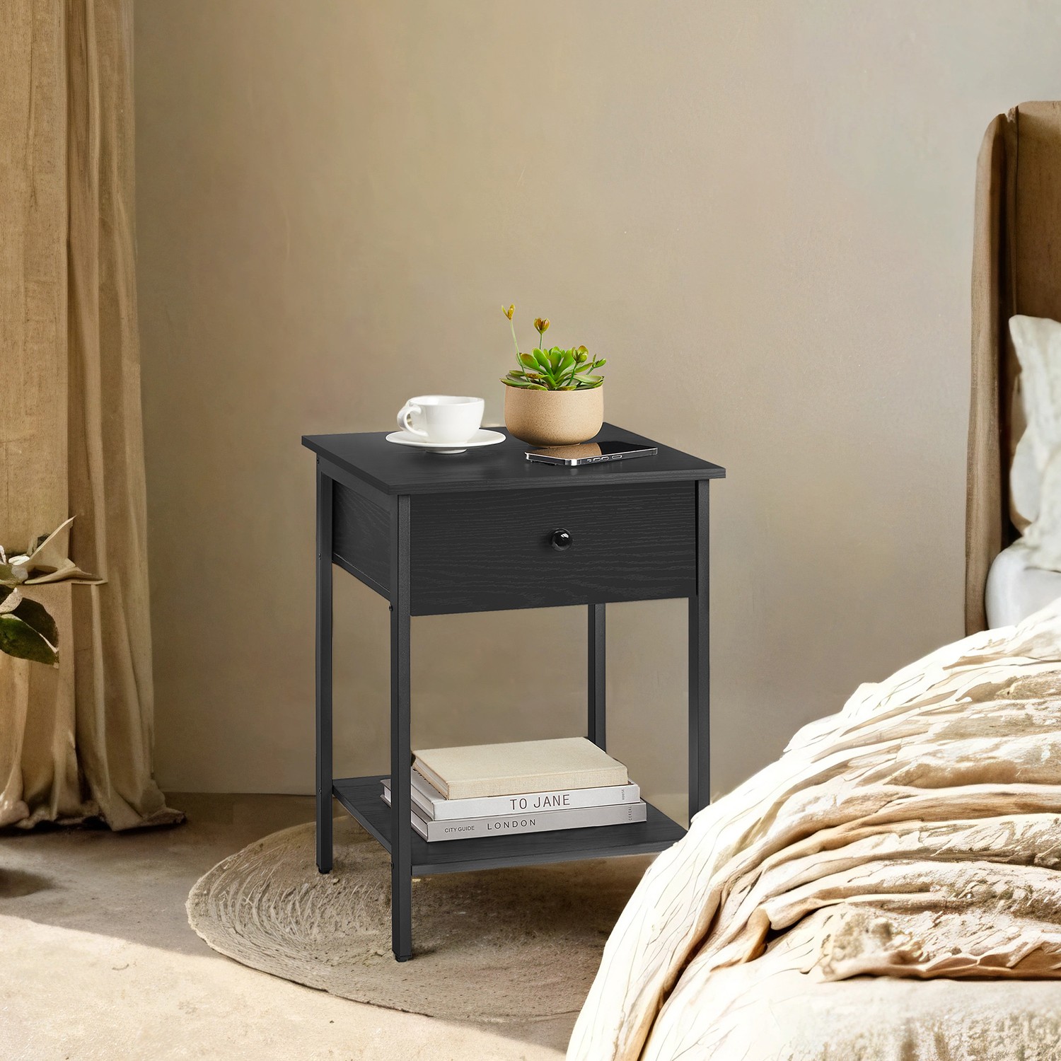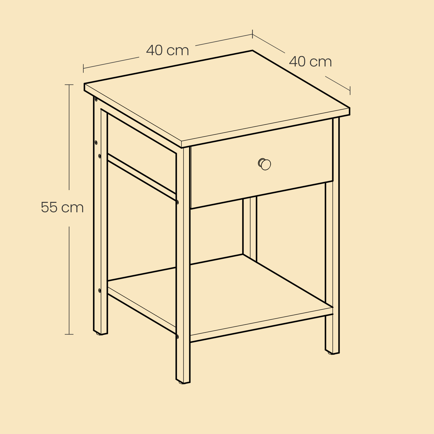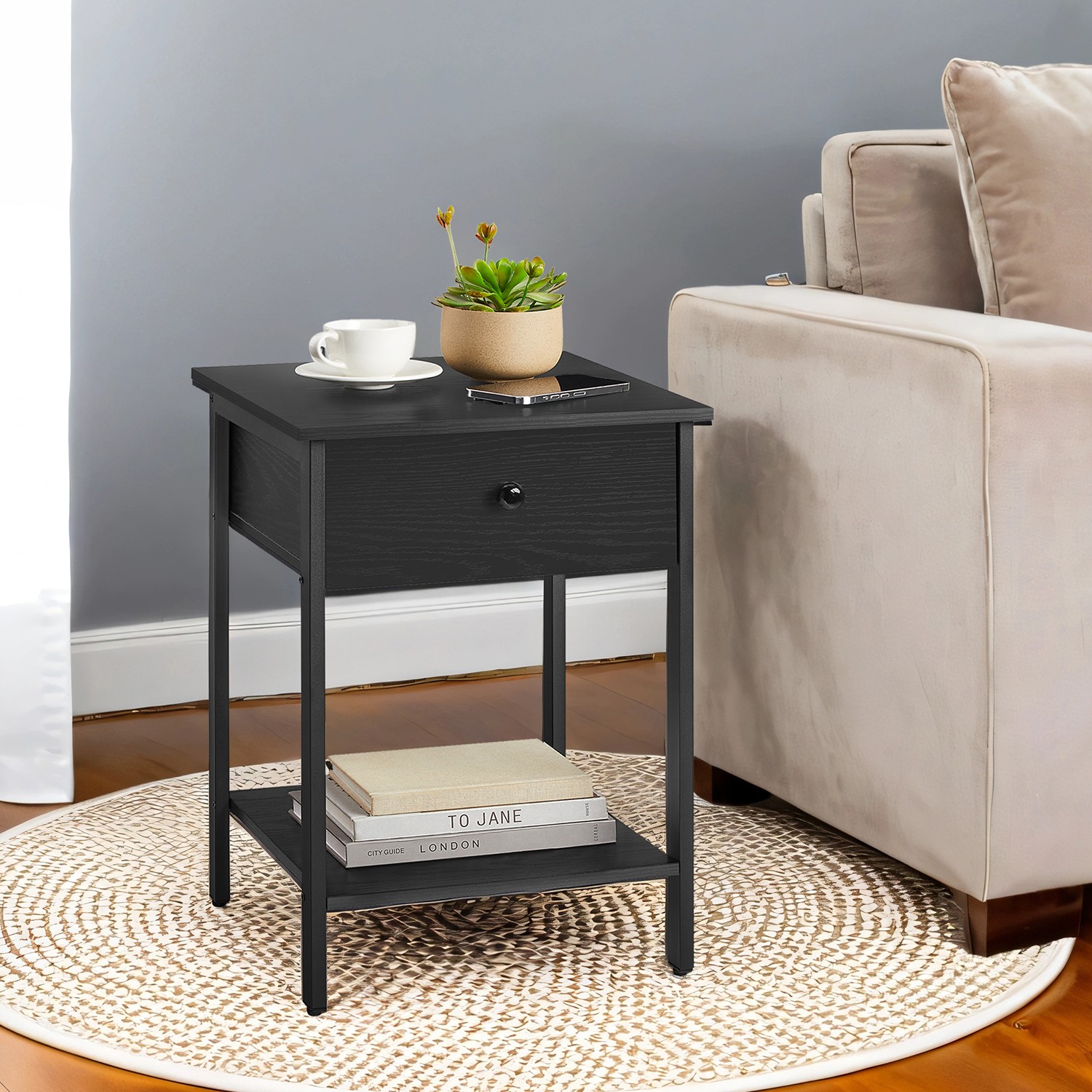 VASAGLE bedside table, nightstand, side table with drawer and shelf, bedroom, living room, easy assembly, industrial design, hazelnut brown-black LET055B03