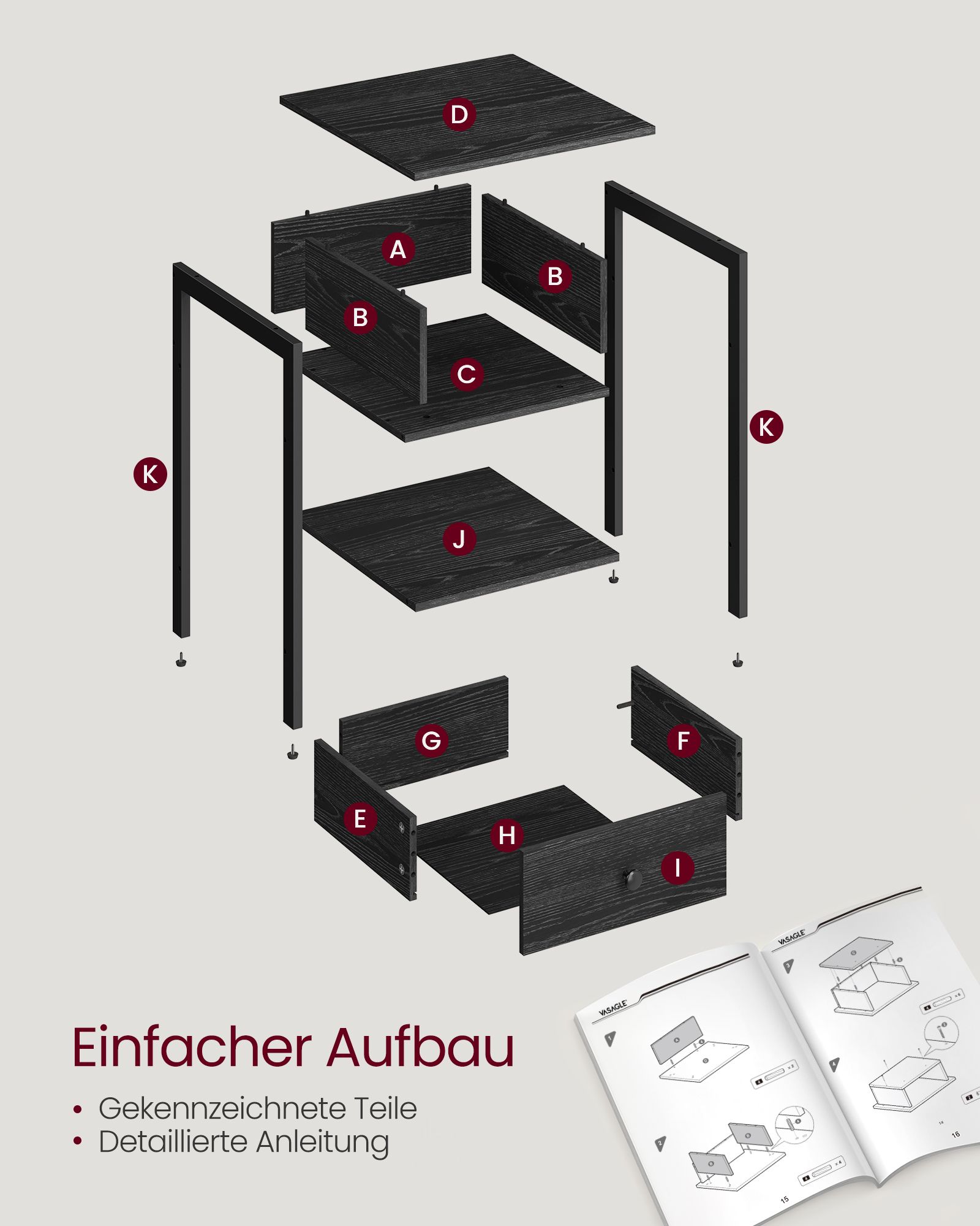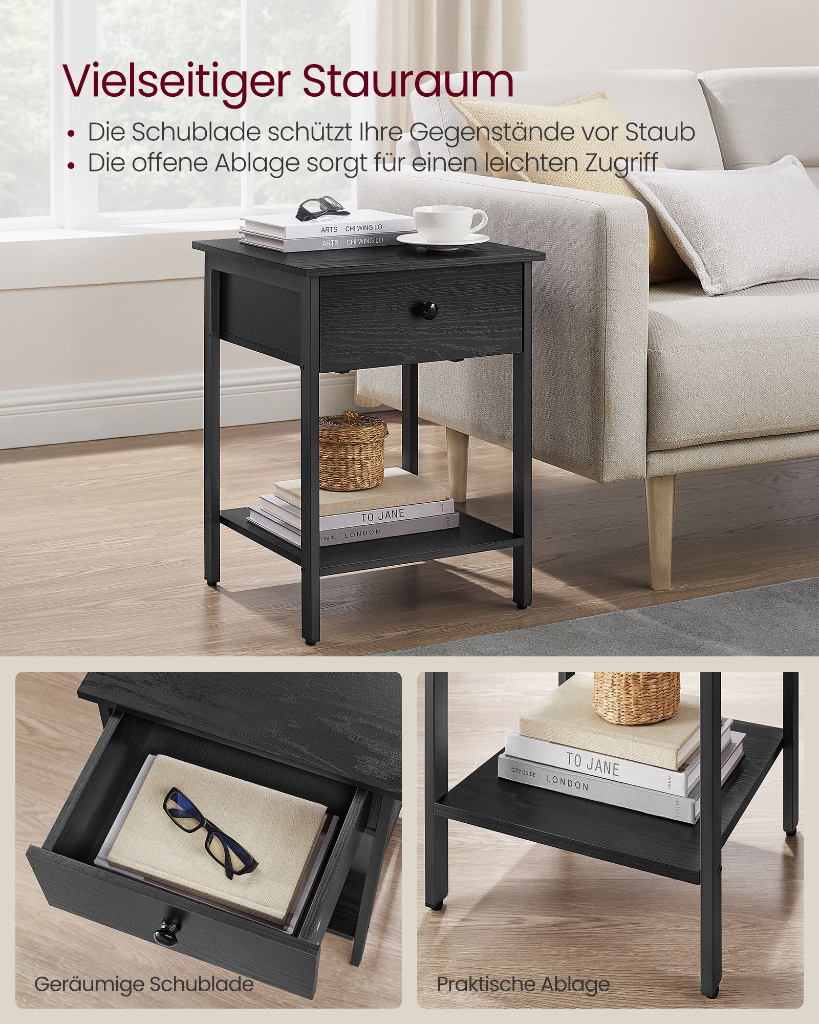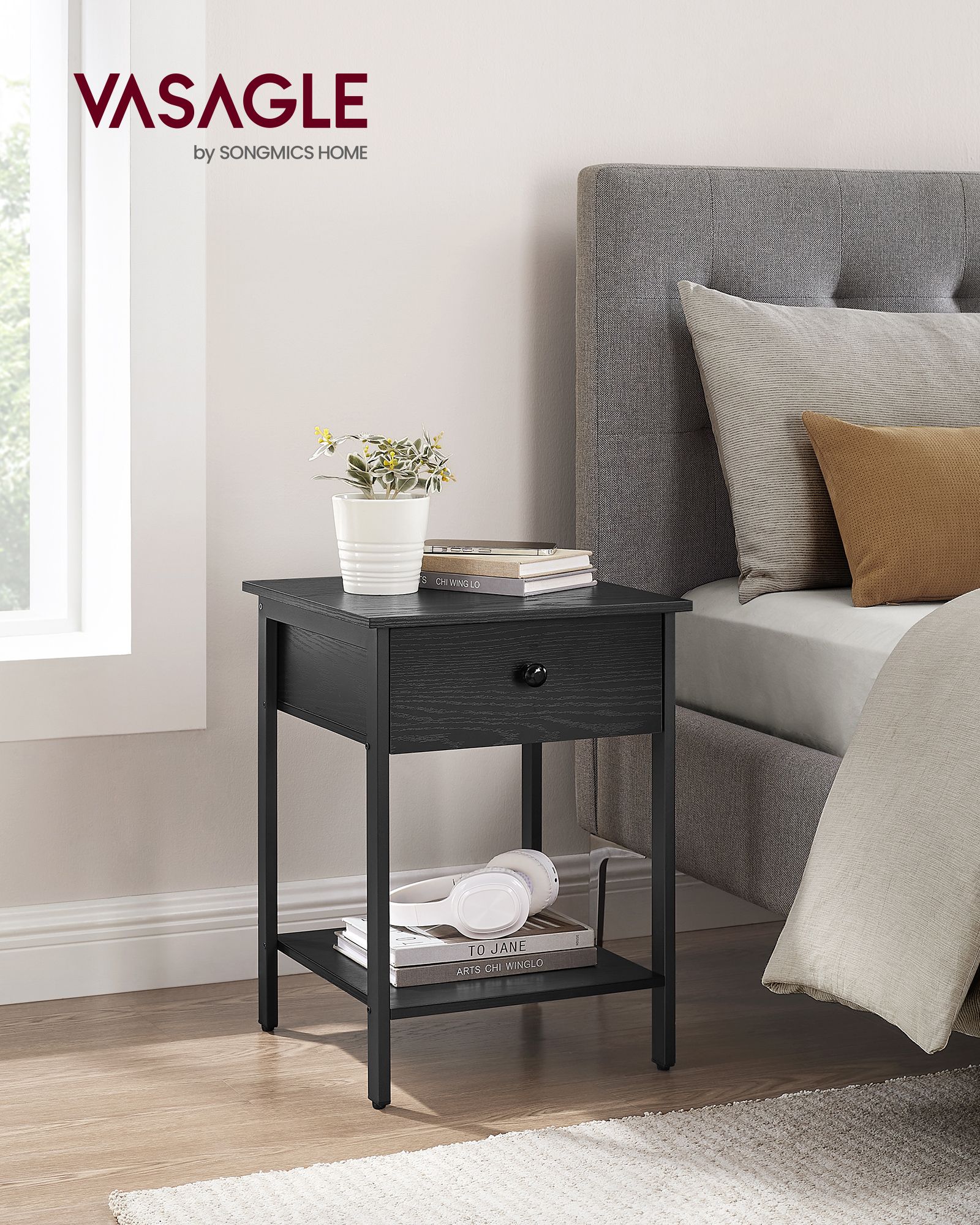 VASAGLE bedside table, nightstand, side table with drawer and shelf, bedroom, living room, easy assembly, industrial design, hazelnut brown-black LET055B03