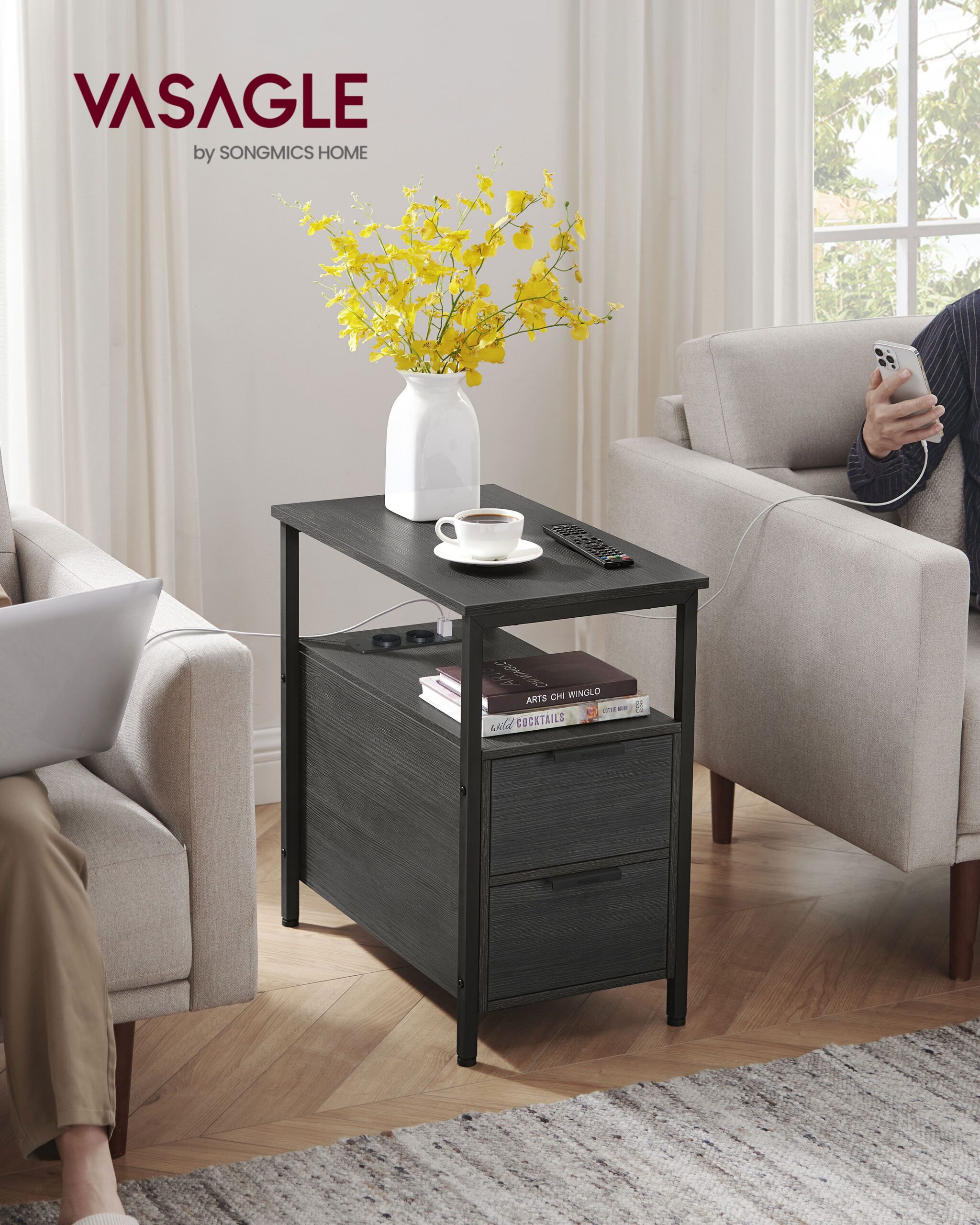 VASAGLE Side Table with Power Strip and 2 Drawers