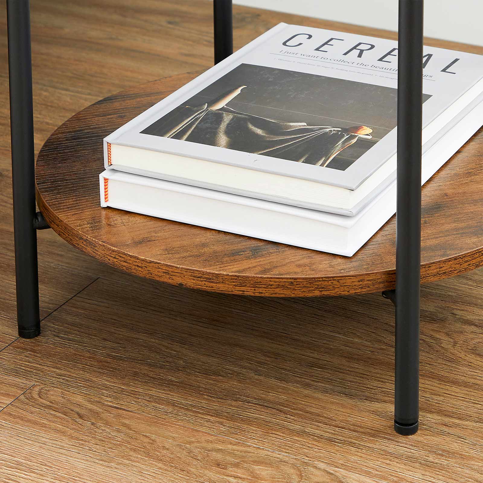 Product details: – Color: Vintage brown-black – Material: Chipboard, steel – Size: 43.5 x 55 cm (Ø x H) – Weight: 3.1 kg – Max. static load capacity per level: 10 kg Scope of delivery:- 1 x side table – 1 x accessory pack – 1 x instructions (DE, EN, ES, FR, IT) VASAGLE Notes: – For safety reasons, children are not allowed to climb on or play with the product.