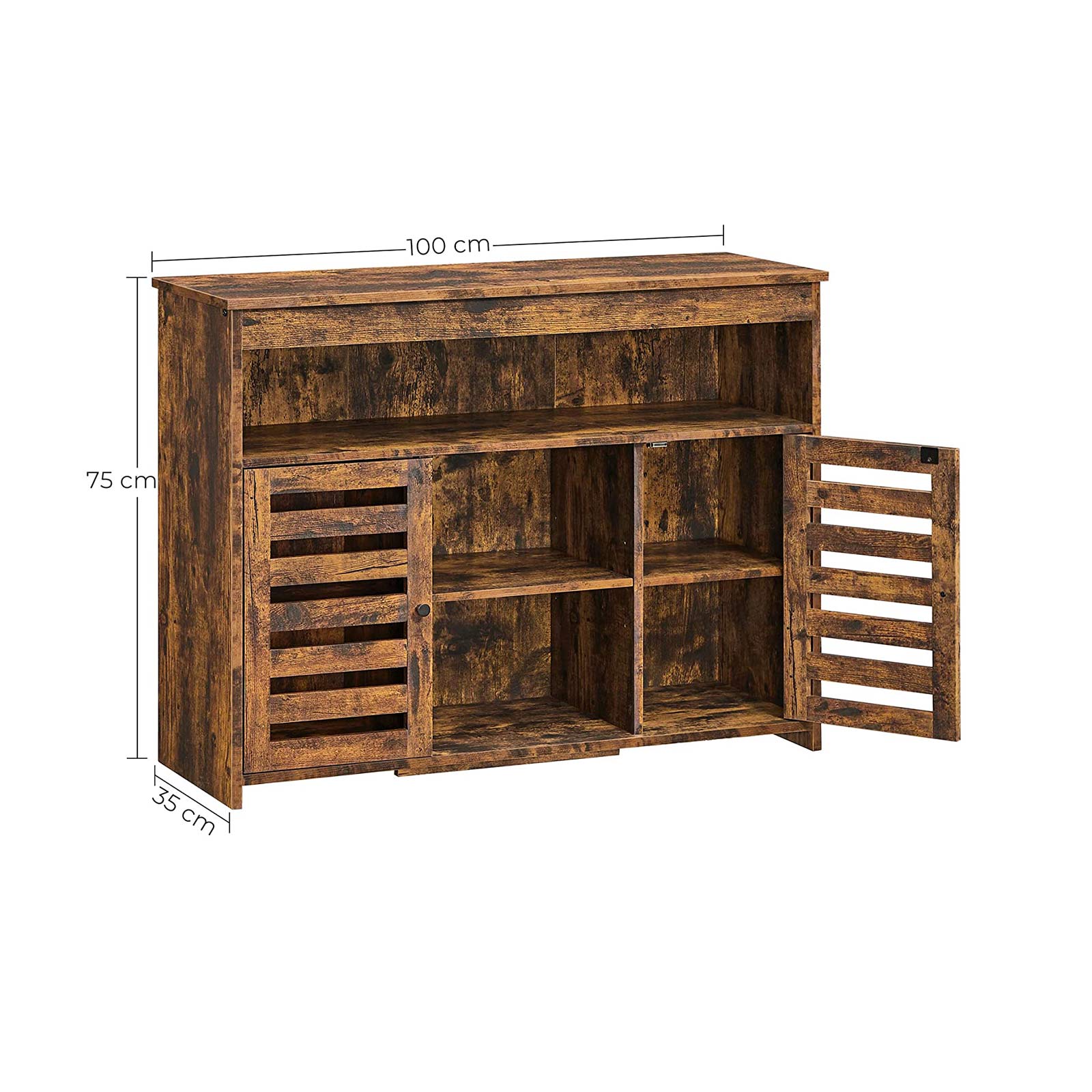 Product details: – Color: Vintage brown – Material: Chipboard – Size: 100 x 35 x 75 cm (L x W x H) – Weight: 23.9 kg – Max. static load capacity in total: 30 kg Scope of delivery:- 1 x Sideboard – 1 x Accessory package – 1 x Anti-tip device – 1 x Instructions VASAGLE Notes: – For safety reasons, children are prohibited from climbing on or playing with the product. – Please attach this product to the wall with the included anti-tip device to ensure safe use.
