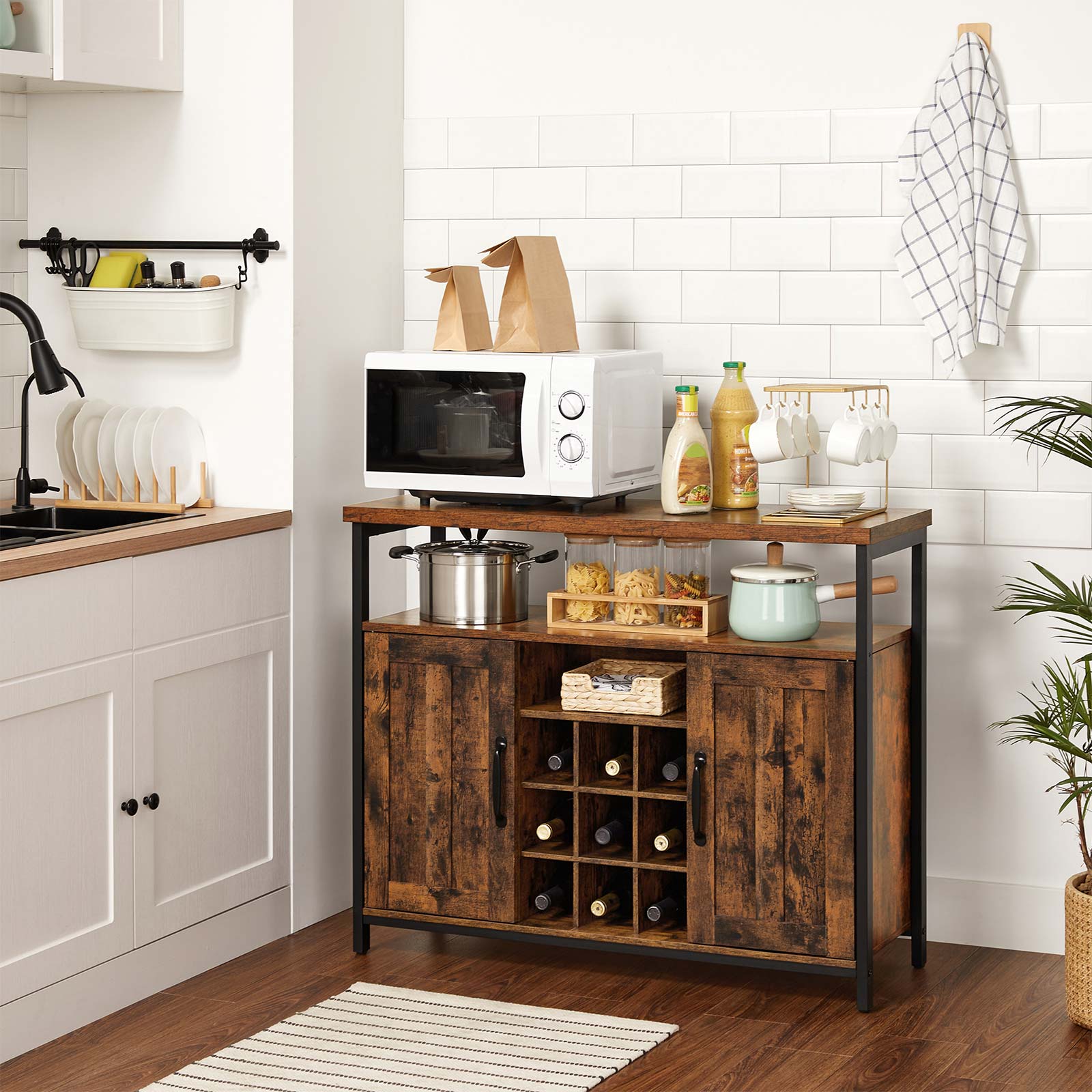 Product details: – Color: Vintage brown-black – Material: Chipboard, steel – Size: 100 x 35 x 81.4 cm (L x W x H) – Weight: 25.9 kg – Max. static load capacity of the surface: 30 kg – Max. static load capacity per shelf in the lower section: 10 kg Scope of delivery: – 1 x storage cabinet – 1 x accessory pack – 1 x anti-tip device – 1 x instructions (DE, EN, ES, FR, IT) VASAGLE Notes: – For safety reasons, children are not allowed to climb on or play with the product.- Please secure this product to the wall with the included anti-tip device to prevent it from tipping over.