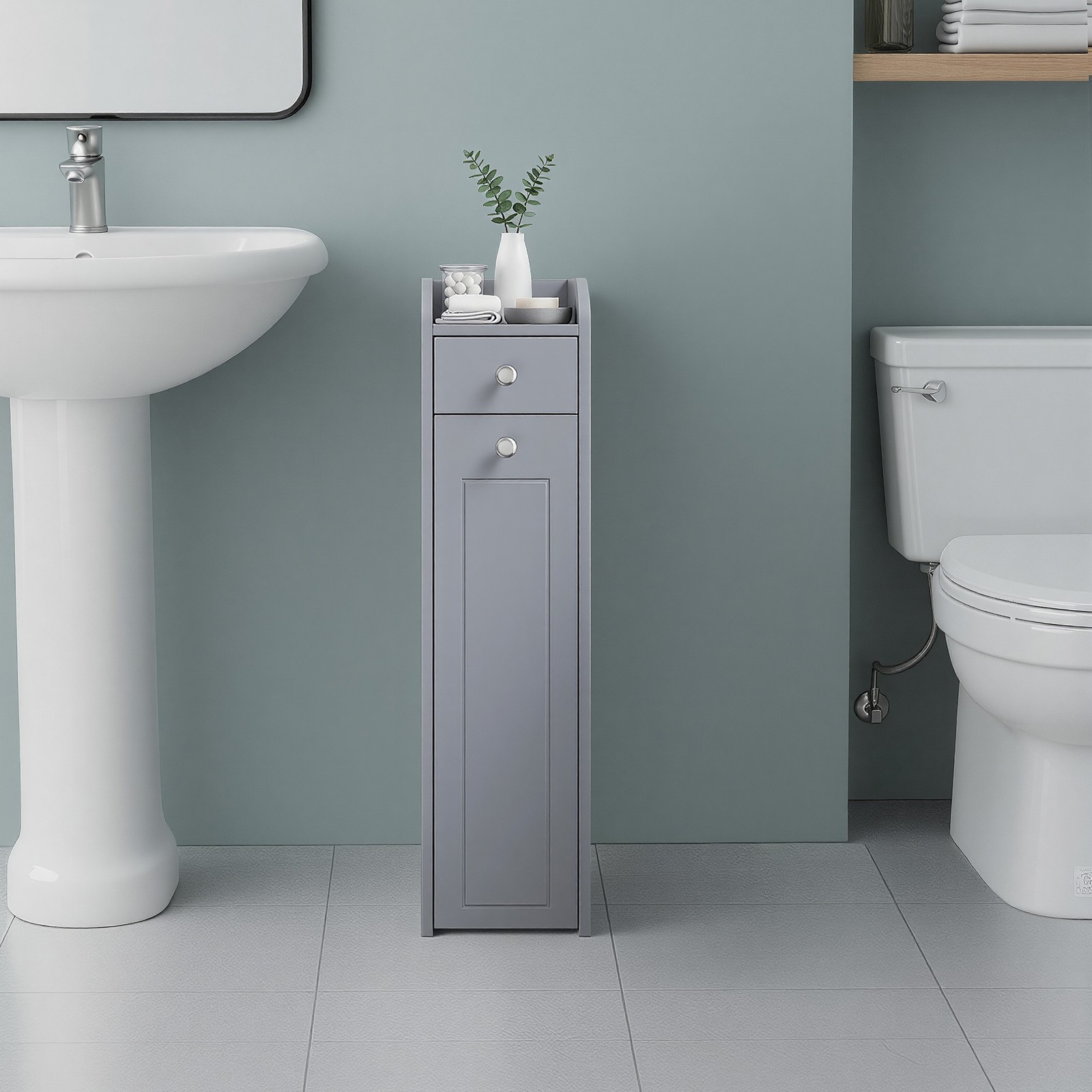 Small bathroom cabinet, narrow bathroom cabinet, small cabinet for toilet paper, toilet cabinet with drawers, for small rooms, dove gray