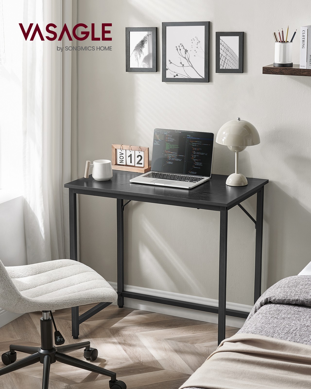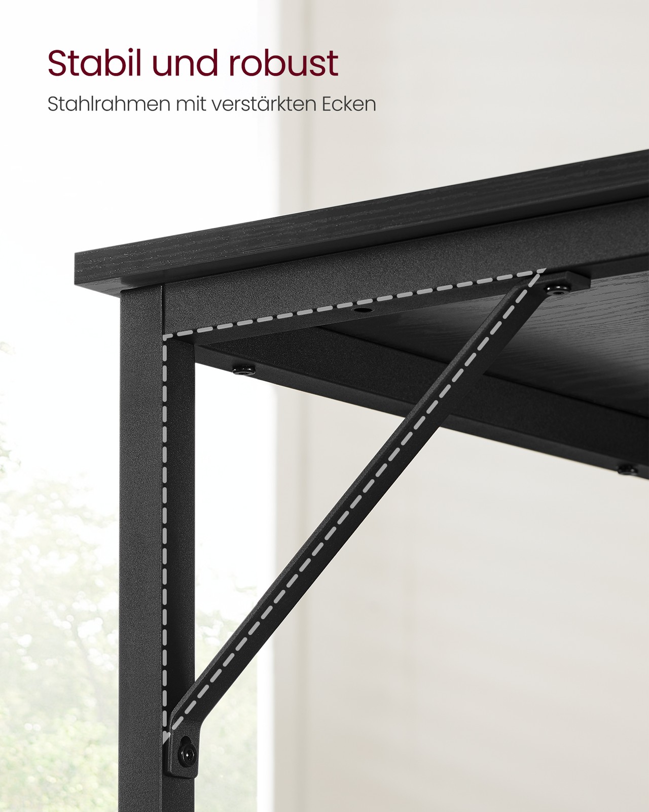 VASAGLE desk, computer desk, narrow office desk, 120 x 60 x 75 cm, study, home office, office, easy assembly, steel, industrial design, vintage brown-black LWD039B01