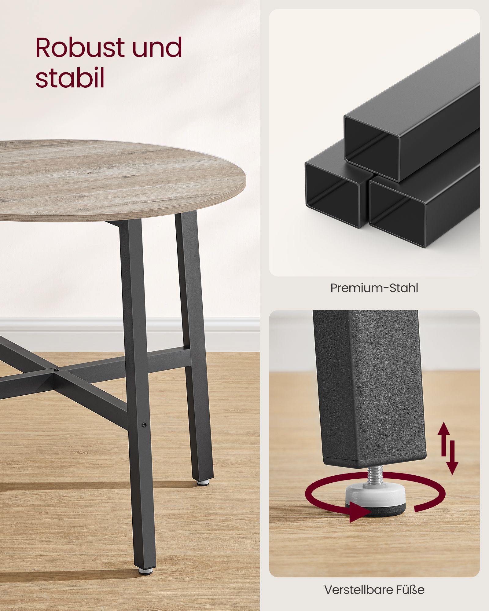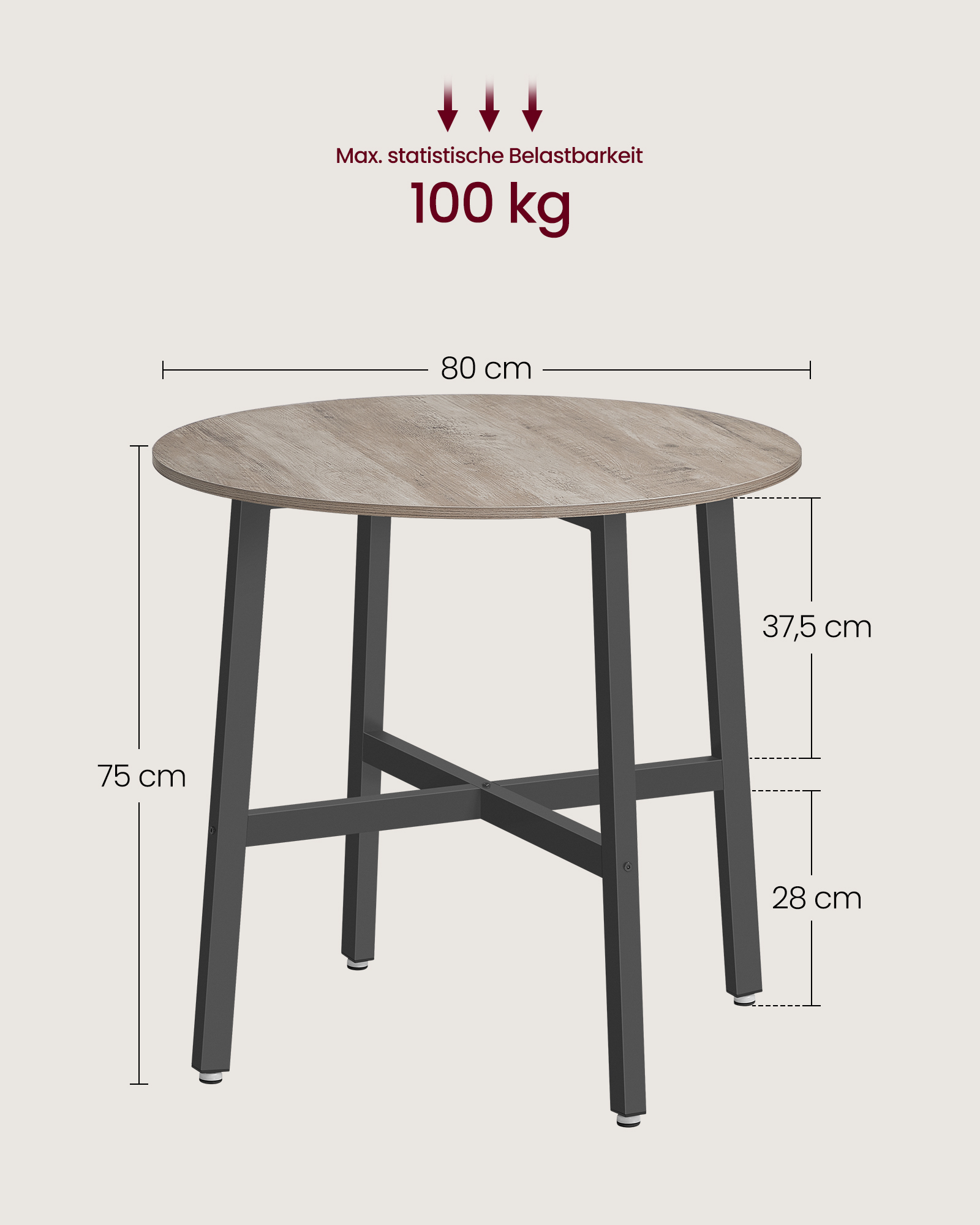 VASAGLE Small dining table, round kitchen table, for living room, office, 80 x 75 cm (Ø x H), industrial design, vintage brown-black KDT080B01