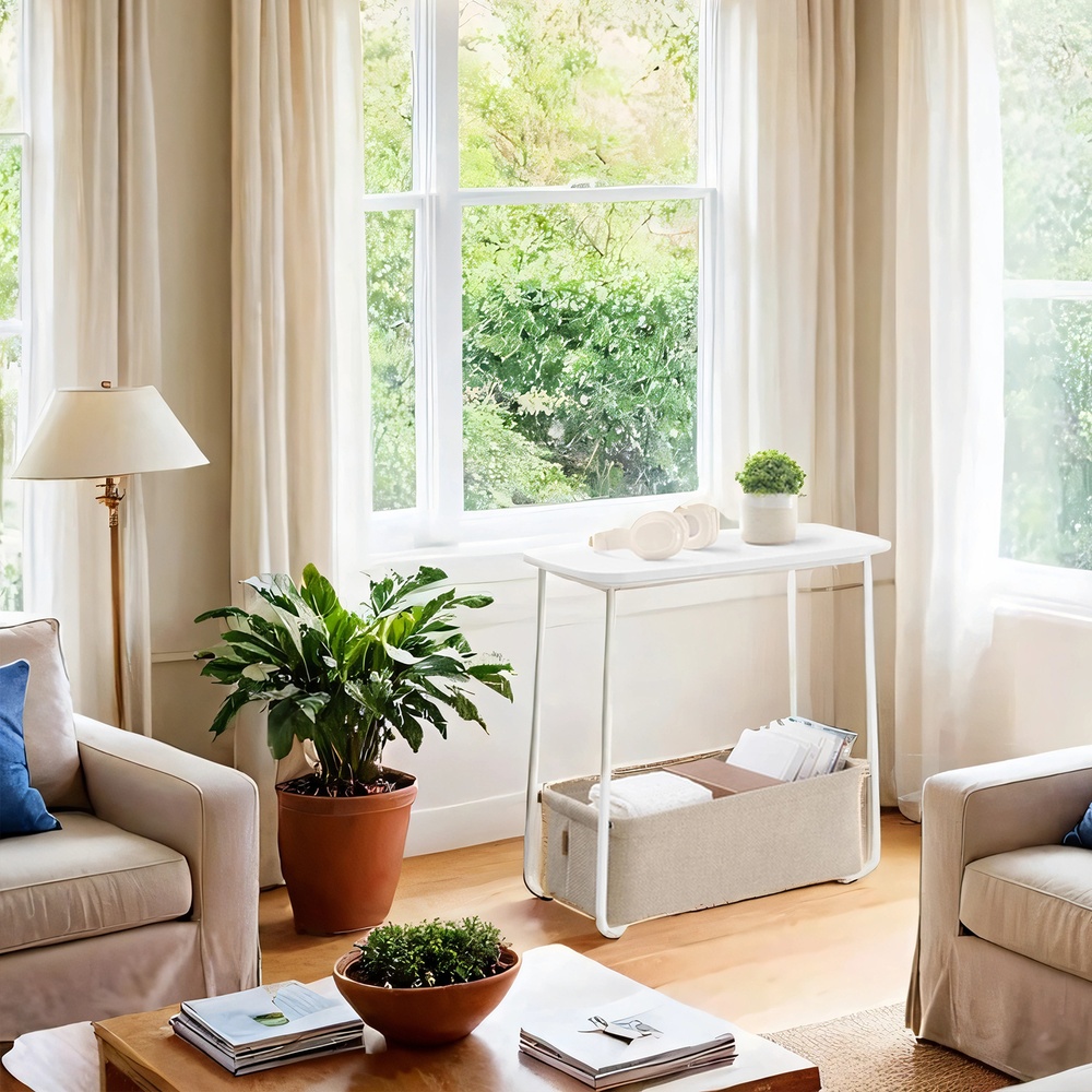 VASAGLE Side Table, Coffee Table with Fabric Basket, Modern Living Room Table, Square Table, for Living Room, Bedroom, Matte White-Camel Brown LET229W10