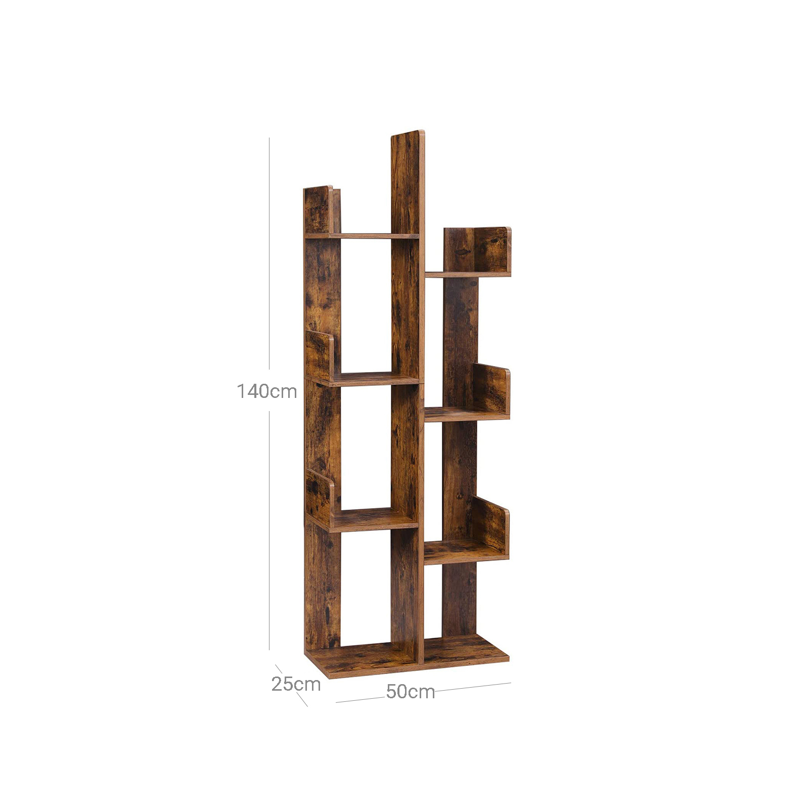 Product details: – Color: Vintage brown – Material: Chipboard – Size: 50 x 25 x 140 cm (L x W x H) – Weight: 11.4 kg – Max. static load capacity per shelf: 10 kg – Max. static load capacity in total: 50 kg Scope of delivery: – 1 x bookshelf – 1 x anti-tip bracket – 1 x accessory bag – 1 x instructions (DE, EN, FR, ES, IT) VASAGLE Notes: – For safety reasons, children are not allowed to climb on or play with the product. – The maximum static load capacity per shelf is 10 kg. Please do not exceed this maximum weight. – Please secure this product to the wall with the included anti-tip device to ensure safe use. – Please lift the shelf if you want to move it. Do not drag it across the floor.