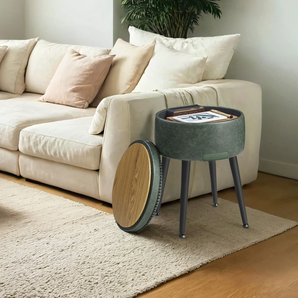 VASAGLE Round Stool Makeup Table Stool Ottoman LOM005C01