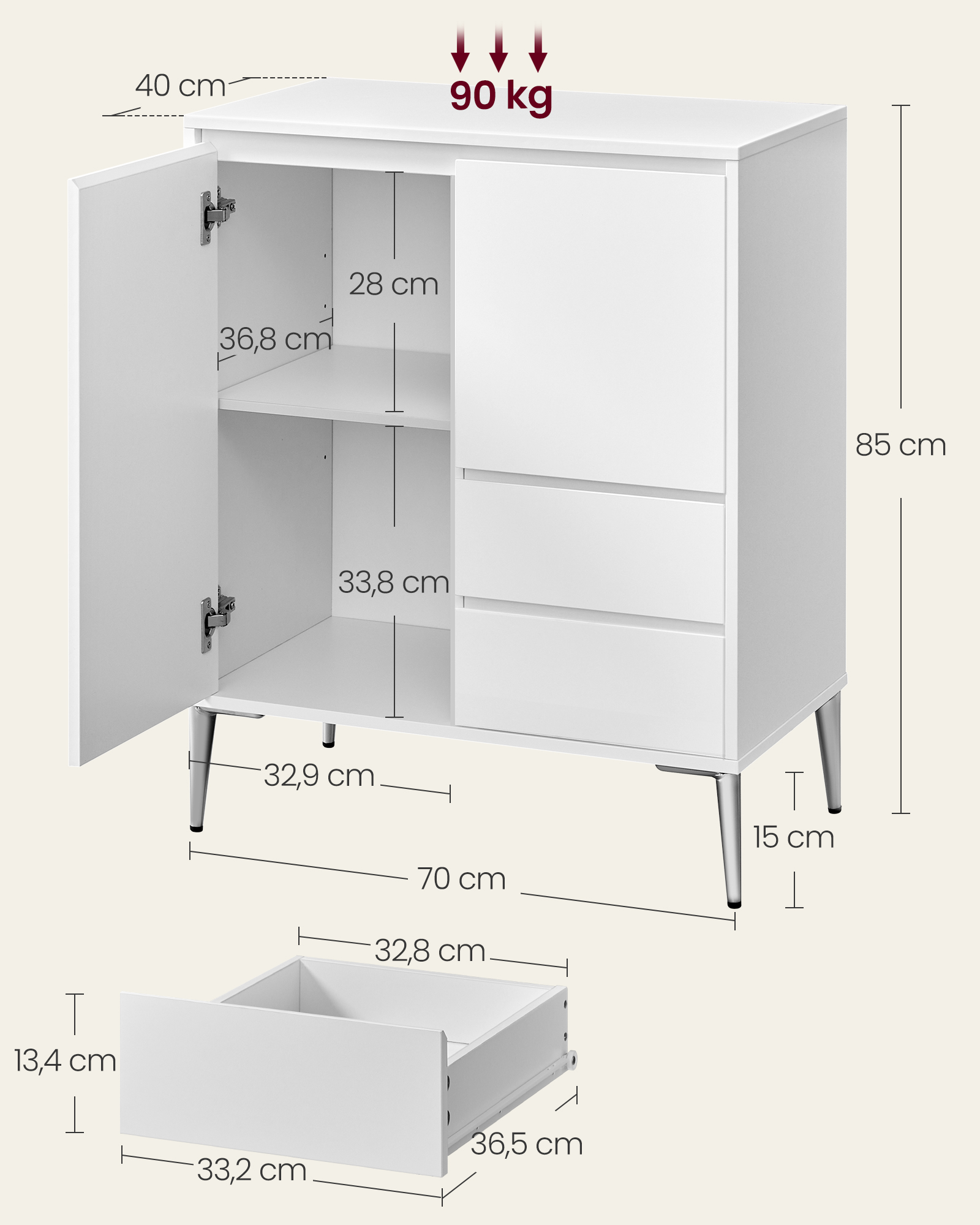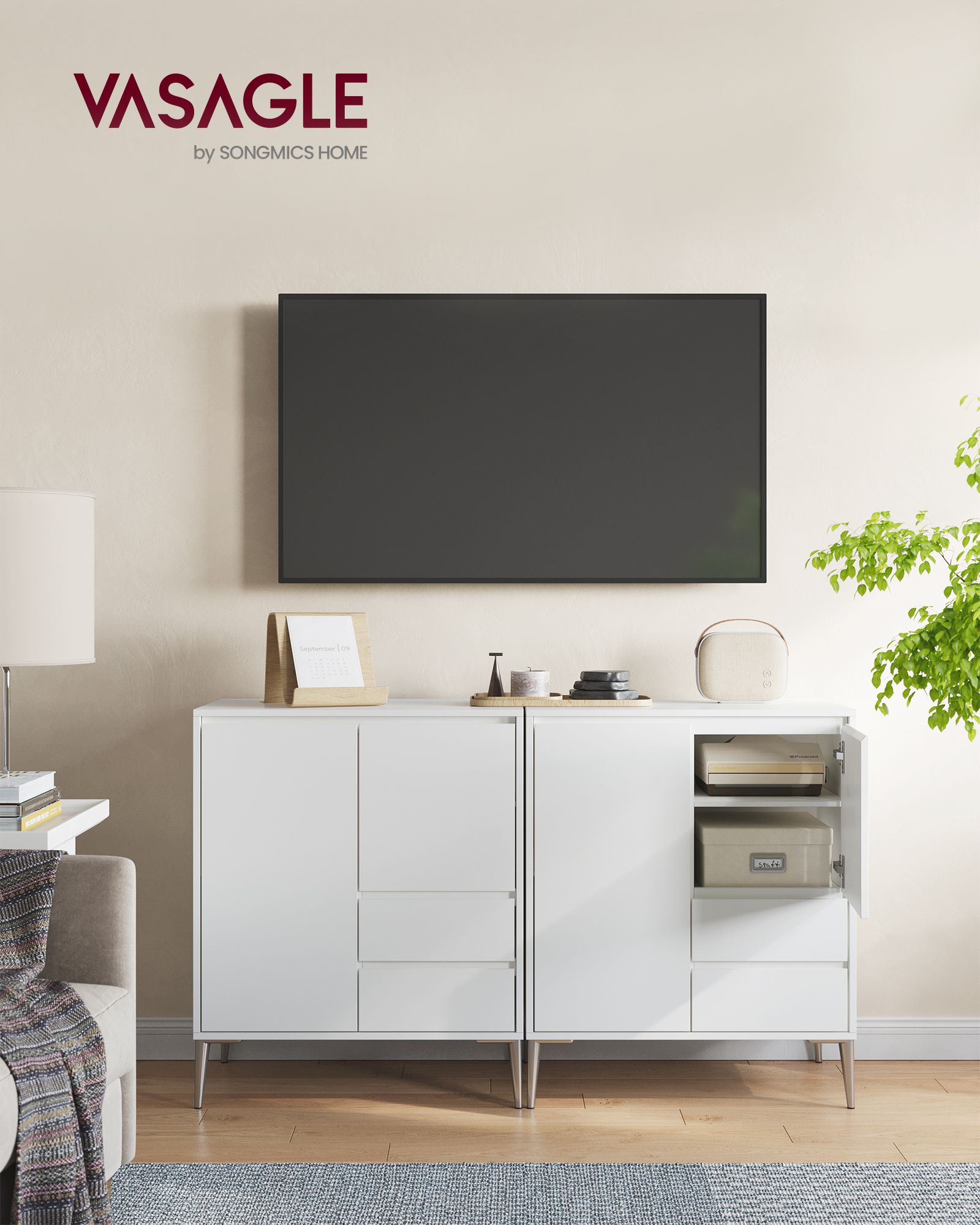 VASAGLE sideboard, storage cabinet, kitchen cabinet with doors, height-adjustable shelves, 2 drawers, modern