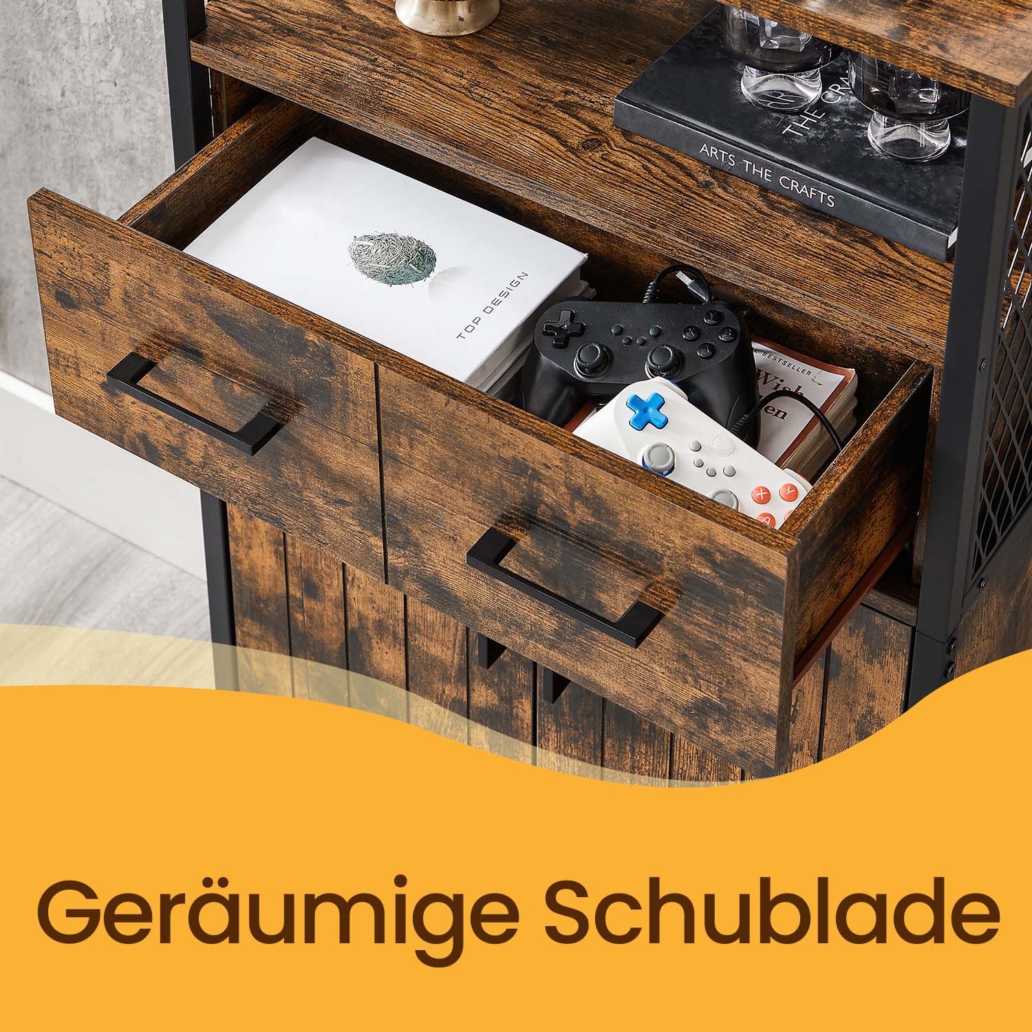 VASAGLE bathroom cabinet, sideboard, adjustable shelf, open compartment, 60 x 30 x 108 cm, industrial design, vintage brown-black LSC261B01