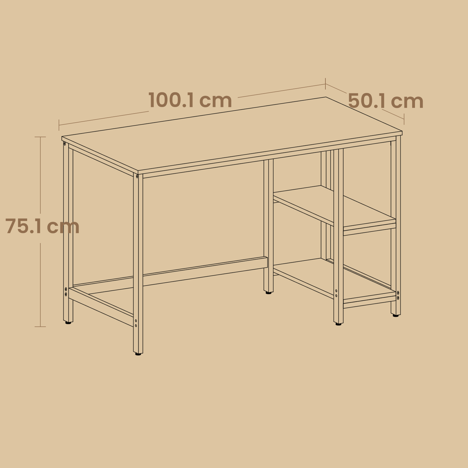 VASAGLE Desk, Computer Desk, PC Desk, Office Desk with 2 Shelves on the Right or Left, Work Desk for the Office, Living Room, Easy Assembly, Industrial Design, Vintage Brown-Black LWD47X