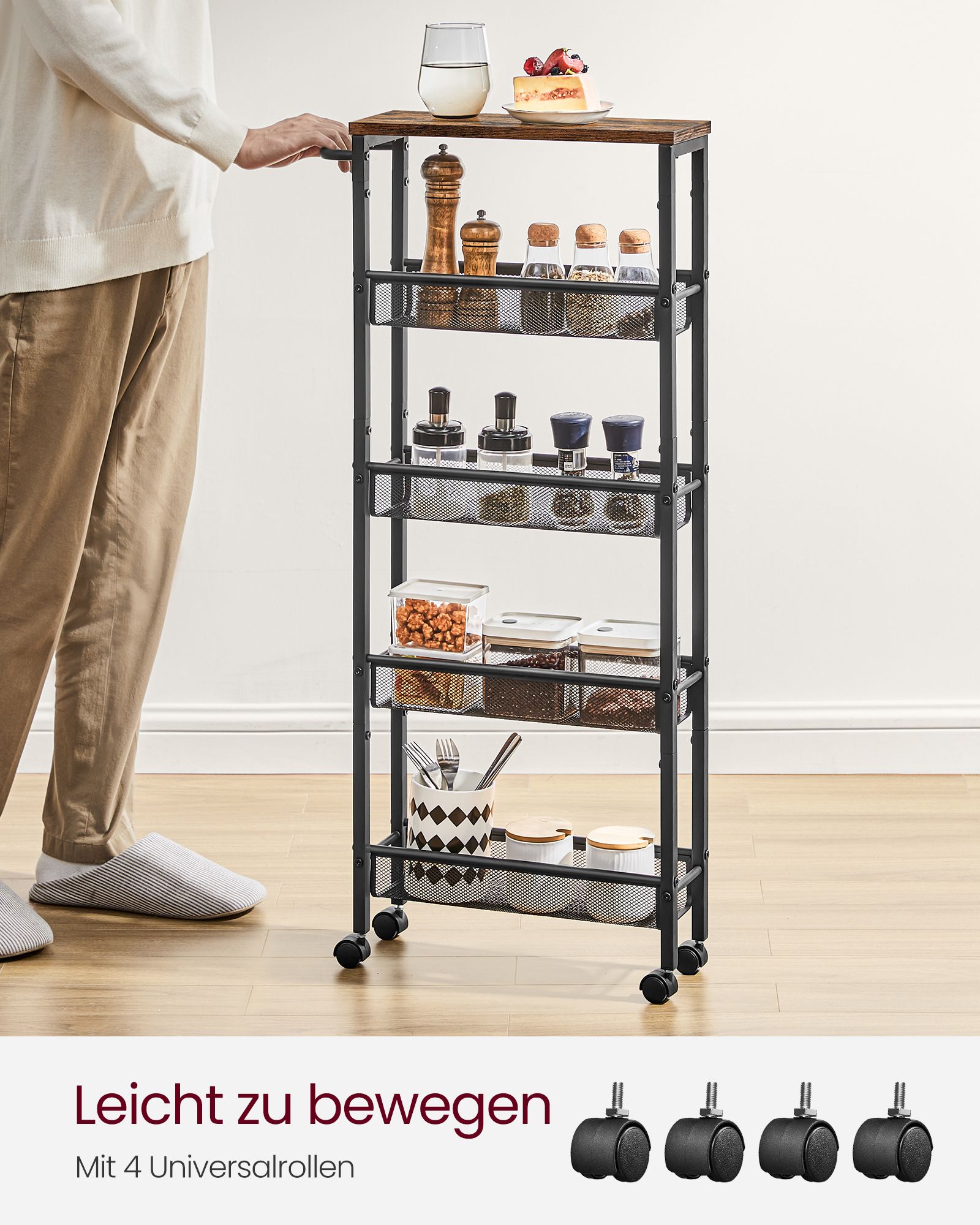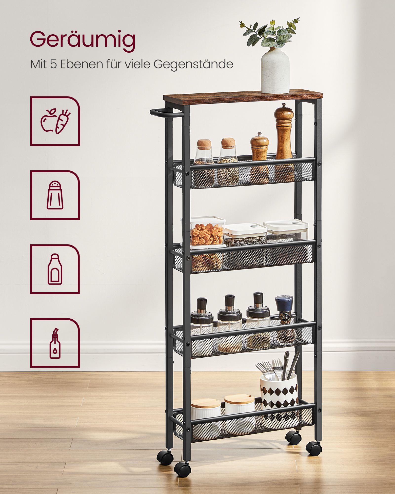 VASAGLE trolley, 5 shelves, narrow, vintage brown-black