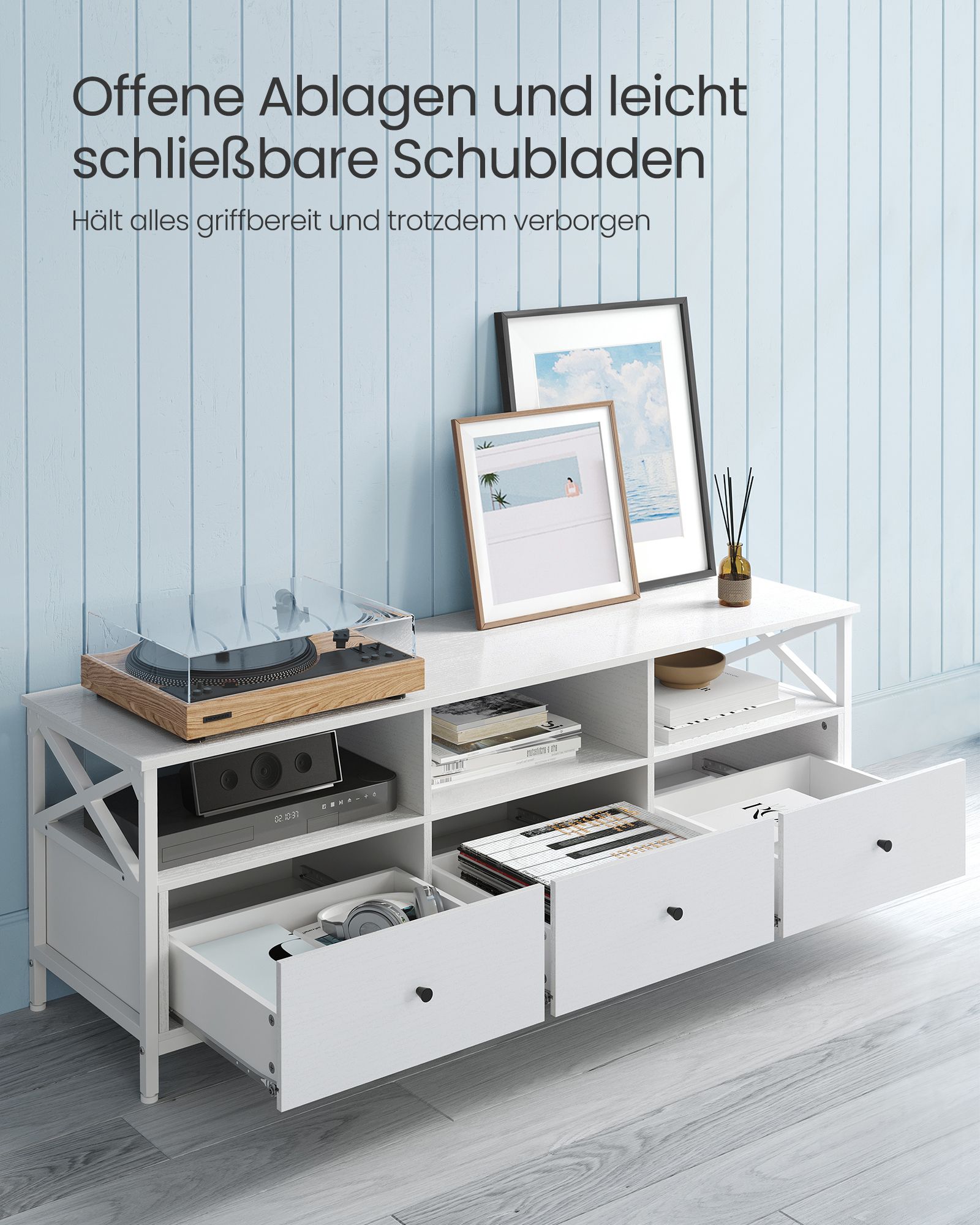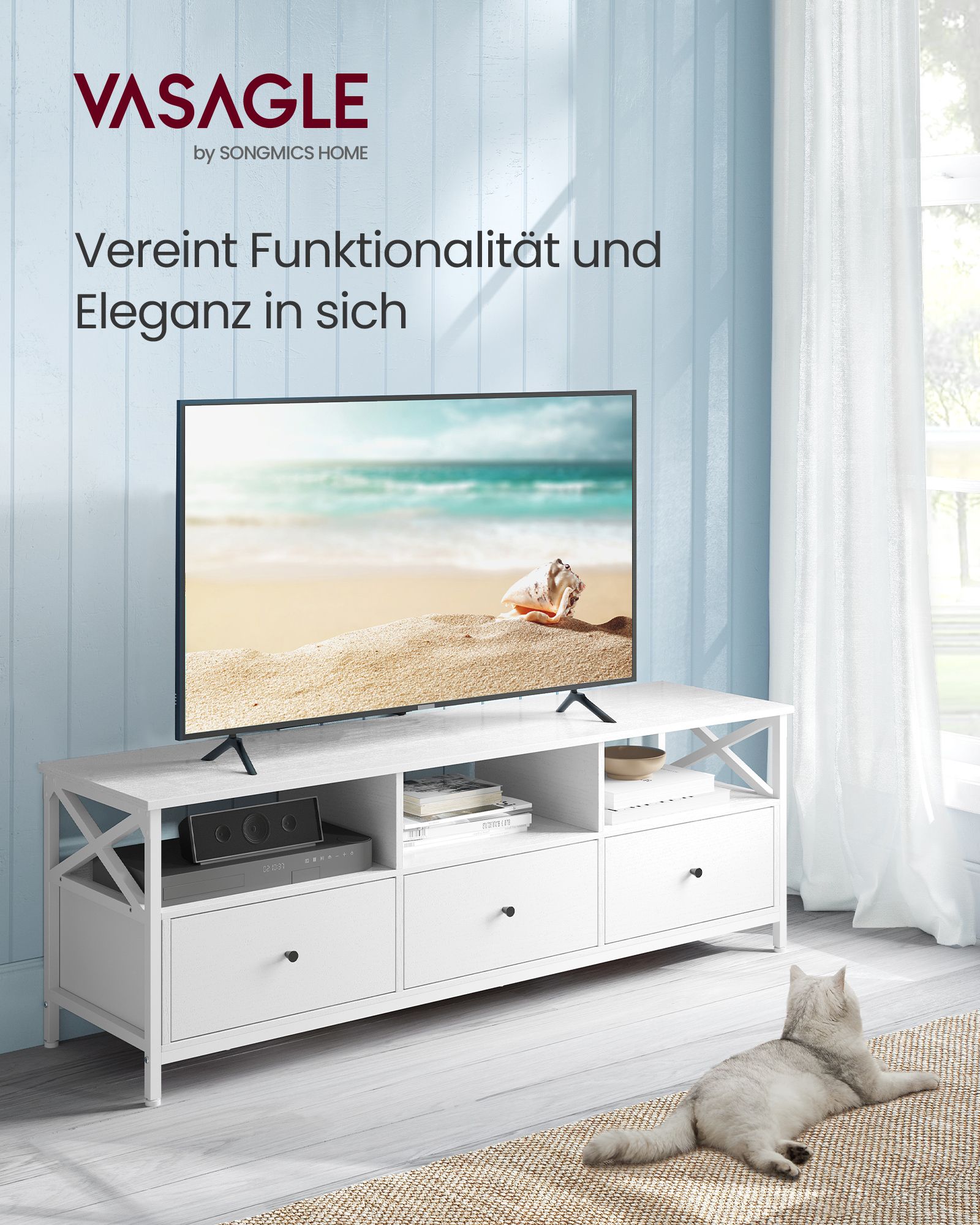 VASAGLE TV cabinet, lowboard for TVs up to 65 inches, TV shelf with 3 drawers, 147 x 40 x 50 cm, industrial design, steel frame, vintage brown-black LTV301B01