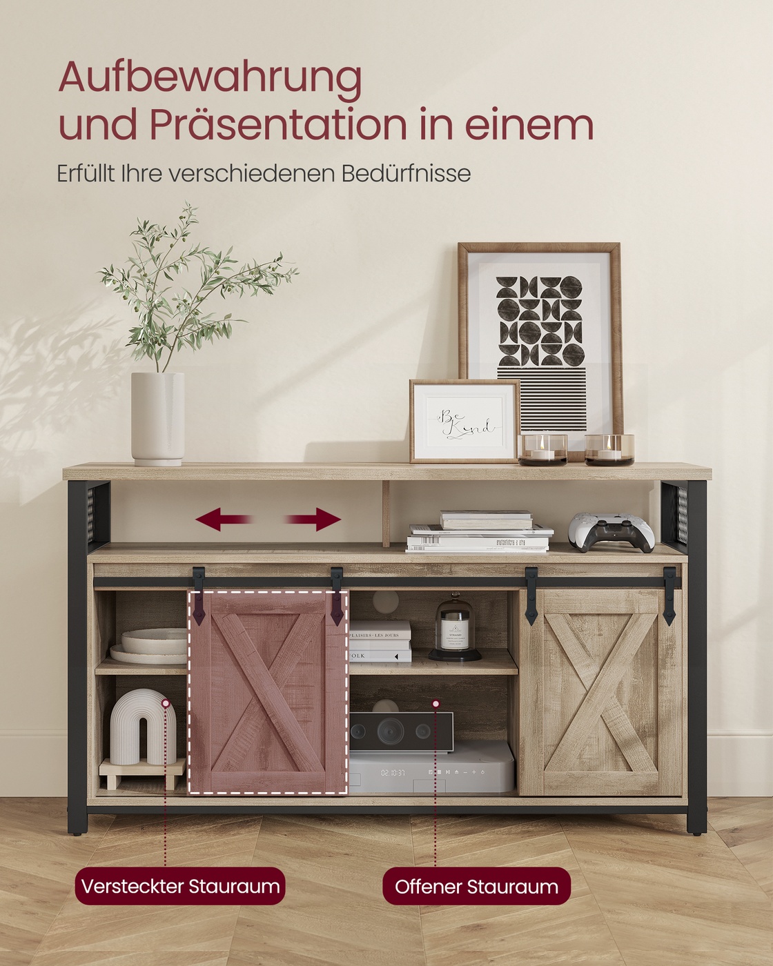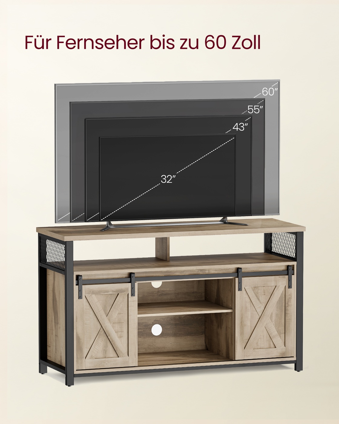 VASAGLE TV cabinet, TV table with 2 sliding doors, TV shelf for TVs up to 60 inches, TV cabinet with adjustable shelves, industrial design, vintage brown-black LTV46BX