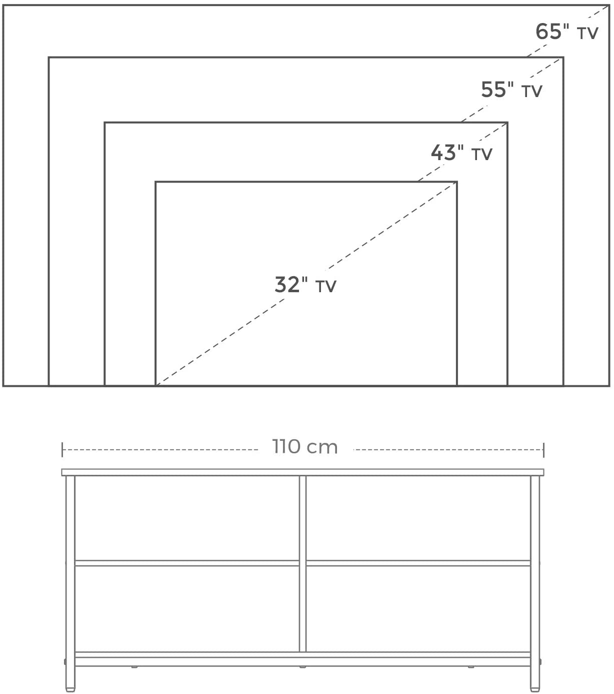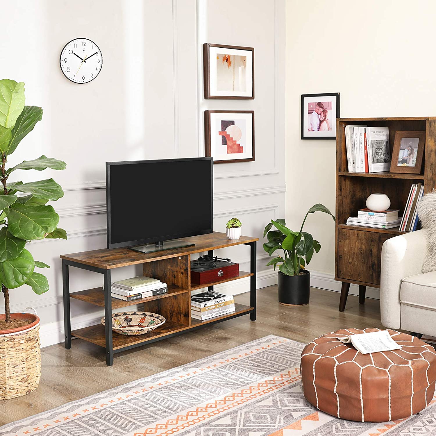 VASAGLE TV cabinet, TV table, TV shelf, lowboard with 4 shelf levels, open compartments, living room, 110 x 40 x 50 cm, industrial design, vintage, dark brown LTV37BX