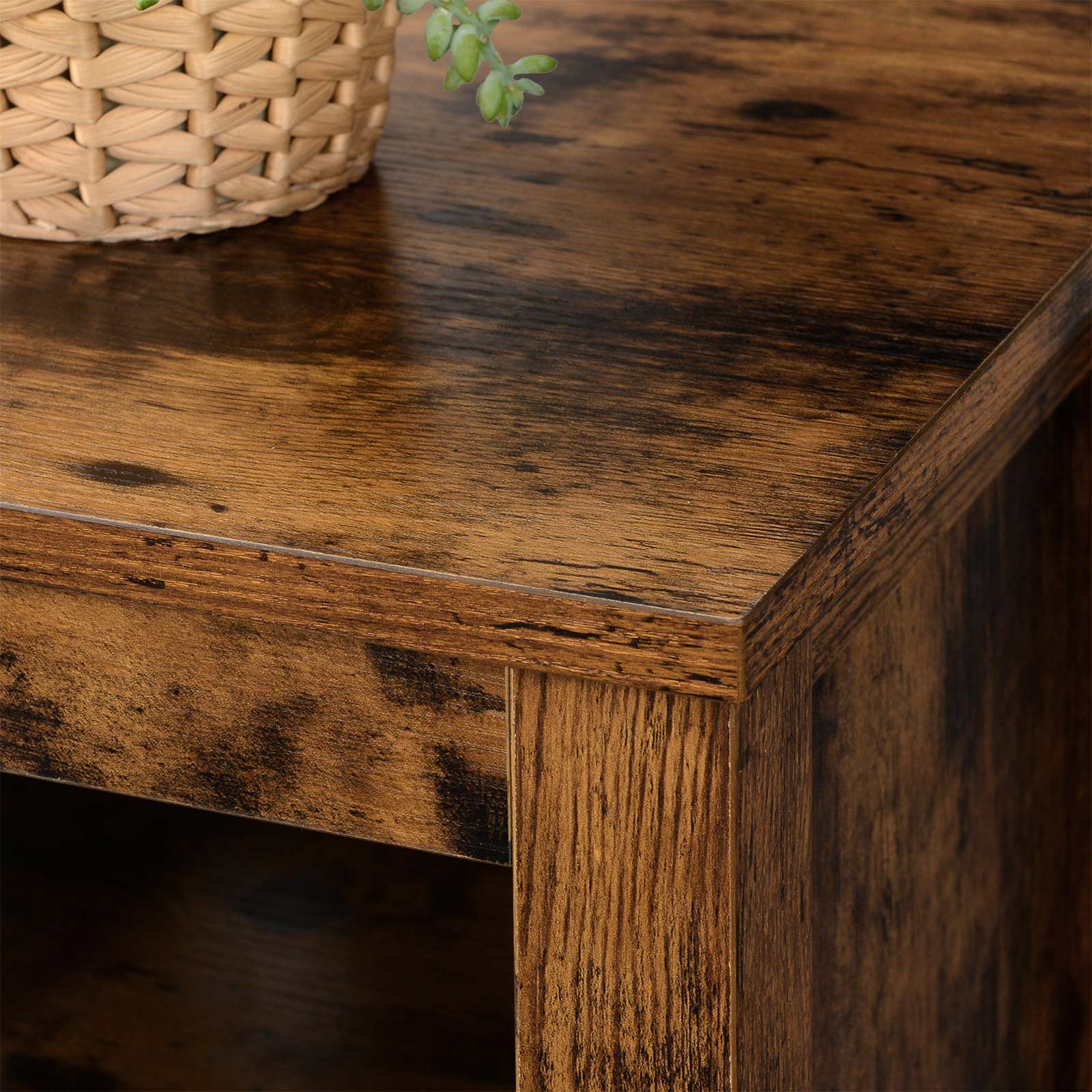 For TV junkies Place your TV on this practical TV cabinet and enjoy your favorite TV series. There’s even more storage space! The 4 open compartments offer space for your DVDs, game consoles, and remote controls. Product details: – Color: Vintage brown – Material: Particle board, MDF (medium-density fiberboard) – Size: 110 x 40 x 50 cm (L x W x H) – Weight: 19.2 kg – Max. static load capacity: 50 kg Scope of delivery: – 1 x TV shelf – 1 x accessory package – 1 x instructions (DE, EN, FR, ES, IT)