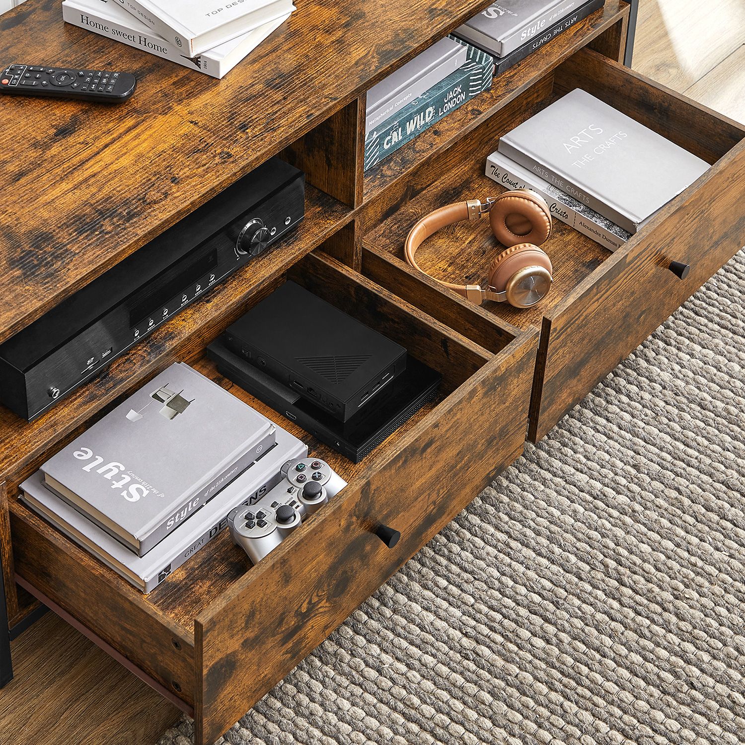 Product details: Color: Vintage brown-black Material: Chipboard, steel Size: 120 x 40 x 50 cm (L x W x H) Weight: 30.4 kg Max. static load capacity of the surface: 40 kg Max. total static load capacity: 75 kg Scope of delivery: 1 x TV table 1 x accessory package 1 x instructions VASAGLE Notes:For safety reasons, children are not allowed to climb on or play with the product