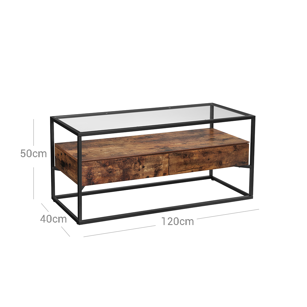 Product details: – Color: Vintage brown-black – Material: Chipboard, steel, tempered glass – Size: 120 x 40 x 50 cm (L x W x H) – Weight: 24.9 kg – Max. static load capacity of the glass top: 30 kg Scope of delivery: – 1 x TV lowboard with glass surface – 1 x accessory package – 1 x instructions (DE, EN, FR, ES, IT) VASAGLE Notes: – For safety reasons, children are not allowed to climb on or play with the product.