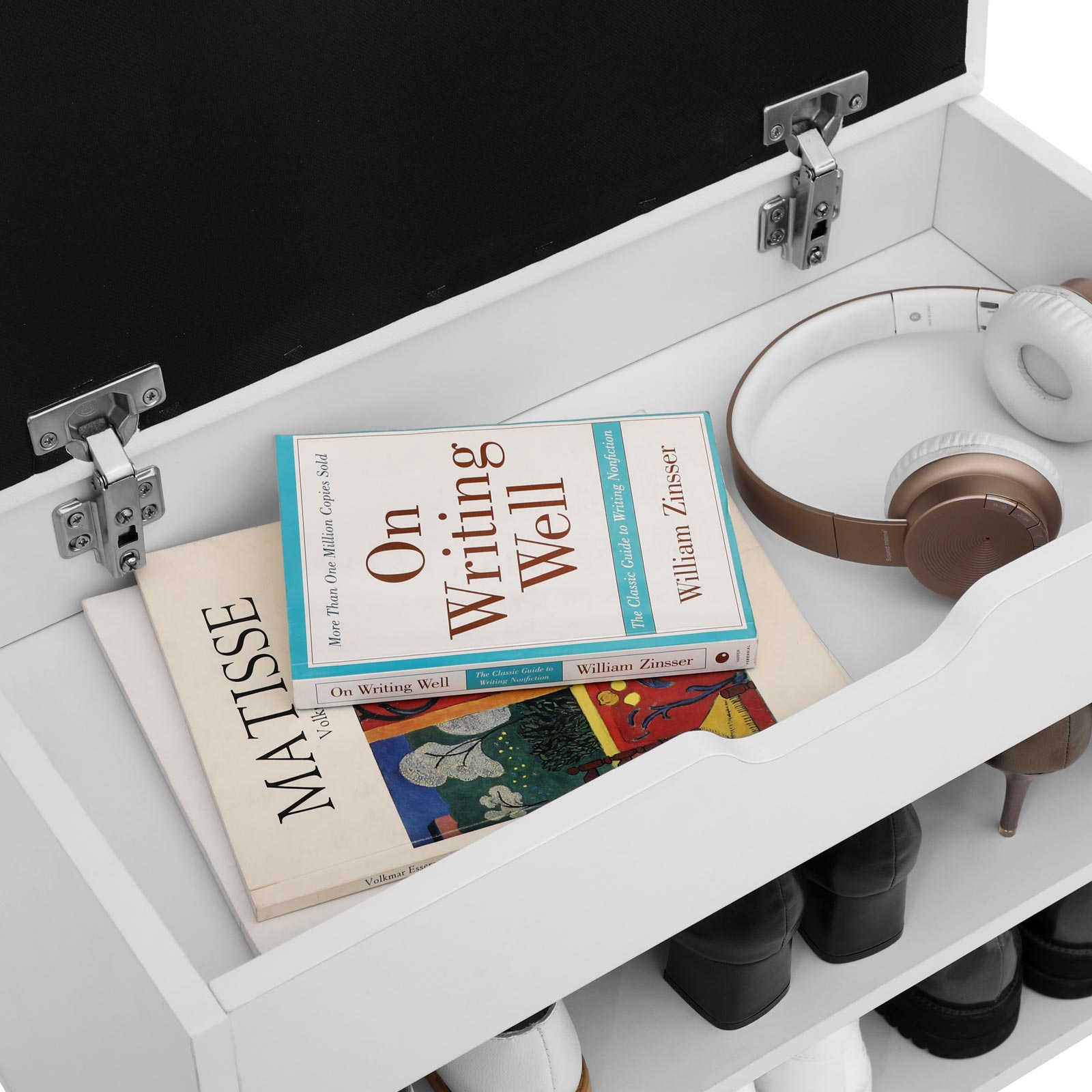 Would you like to have a place to sit in your hallway so you can put on your shoes comfortably? And even better, with storage space under the bench? Then the VASAGLE shoe bench is ideal for you! With even weight distribution, it can hold up to 150 kg, so two people can sit on it. The padded seat offers seating comfort and is also easy to clean. In addition to the lower storage space for your shoes, there is also a storage compartment under the seat, which is the ideal place for various items such as shoe cleaning supplies. It can be used in the hallway, living room, bedroom, or on the balcony. Here are some more ideas. With the VASAGLE shoe bench, you will enjoy your purchase for years to come. Product details: – Color: matte white – Materials: chipboard, foam (cushion), PU (seat cover), plastic (floor glides) – Product size: 60 x 30 x 44 cm (W x D x H) – Package size: 73 x 47.5 x 17 cm – Net weight: 12.2 kg Scope of delivery – 1 x shoe bench – 1 x instructions – 1 x accessory bag (without screwdriver)