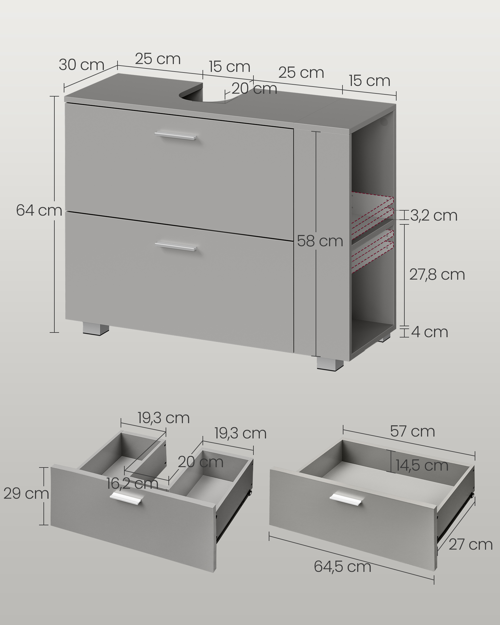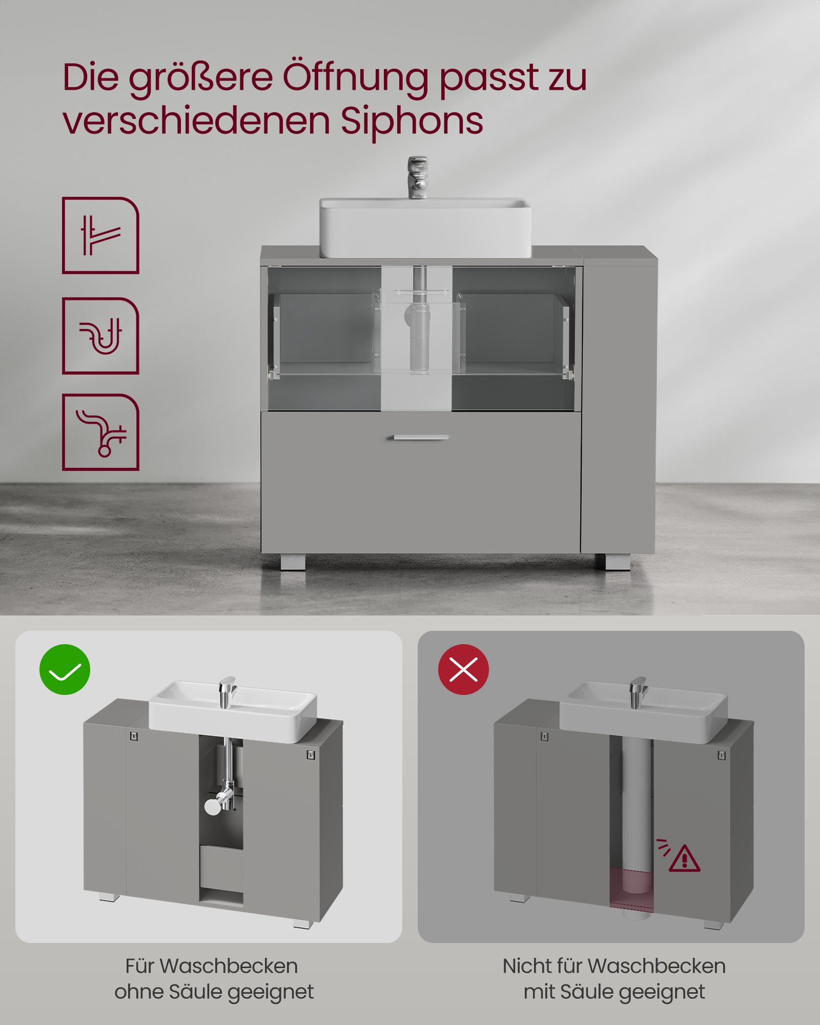 Size of opening for siphon: 20 x 15 cm (D x W)