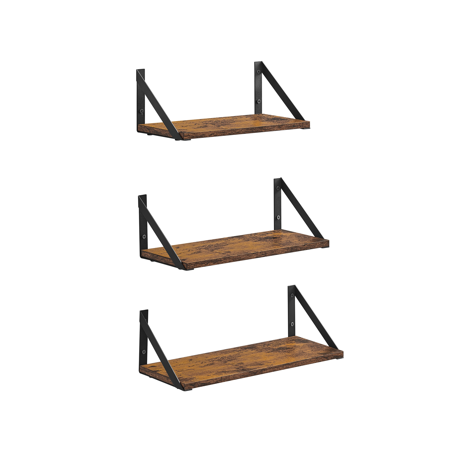 Short on floor space? Look up at your walls! With these 3 floating shelves, you can display picture frames in your bedroom, place soap dishes and toiletries in your bathroom, or store spice jars in your kitchen. Use them however you want Arrange the 3 shelves at the top or bottom? Use them together or separately? Mount them in your kitchen or living room? It’s entirely up to you! Product details: – Color: Vintage brown-black – Material: Chipboard, steel – Shelf size: – 15 x 40 x 12 cm (large) (D x W x H) – 15 x 35 x 12 cm (medium) (D x W x H) – 15 x 30 x 12 cm (small) (D x W x H) – Weight: 2 kg – Max. static load capacity per shelf: 5 kg Scope of delivery: – 1 x wall shelf (large) – 1 x wall shelf (medium) – 1 x wall shelf (small) – 1 x instructions VASAGLE Notes – The maximum static load capacity of each shelf is 5 kg. Please do not exceed this maximum weight.