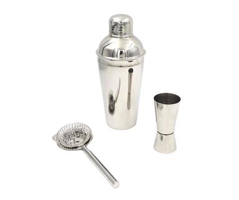 Bartenderset i stål, 3 delar – BS48171 Bartendersetet i stål är en perfekt presentidé för en nybörjare inom bartenderyrket och för den som älskar att experimentera med spritdrycker. Setet innehåller 3 grundläggande delar som gör det enklare att skapa populära drinkar: en shaker, ett måttglas och ett bartenderfilter. Tillbehören är tillverkade av rostfritt stål. Alla delar har en silverfärg, vilket ger dem ett mycket elegant utseende. Detta 3-delars bartenderset är ett perfekt set att fylla din hembar med. Tack vare setet kommer du att imponera på dina gäster på festen genom att servera dem läckra drinkar. Bartendertillbehören är förpackade i en vit kartong. Mått: Shaker: Höjd 21 cm, diameter 8,5 cm Jigger: Höjd 9,5 cm, diameter 4,5 cm Sil: Längd 18,5 cm, diameter 7 cmSetet innehåller: – Tre delar shaker – 750 ml – Dubbel bartendermått (jigger) – 15/30 ml – Bartenderfilter (sil) Information och certifikat: – Tillverkad av 201 rostfritt stål. – Tillbehören är certifierade som livsmedelssäkra – godkända för kontakt med livsmedel.