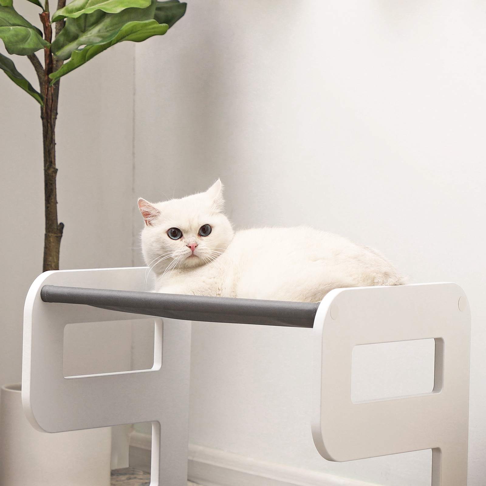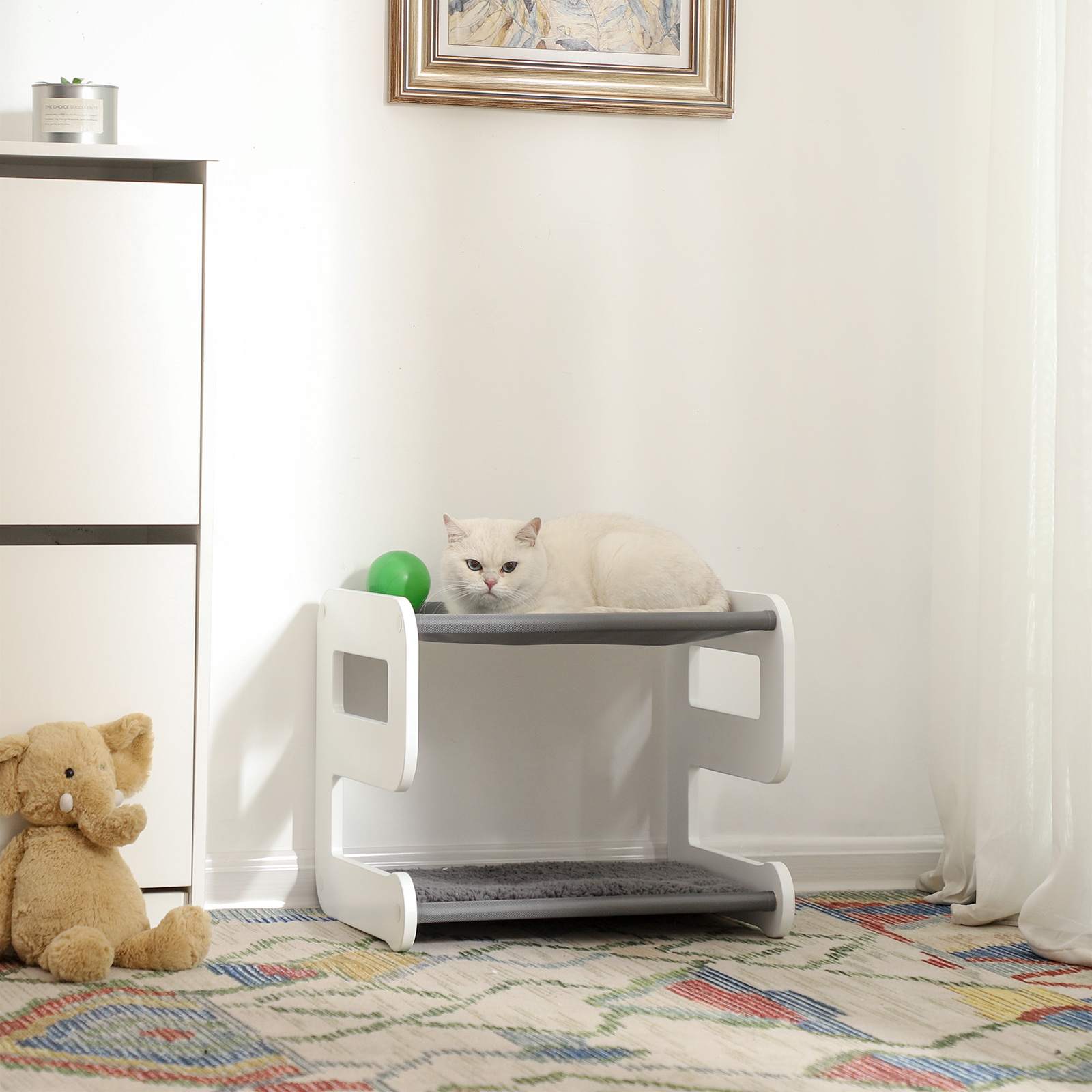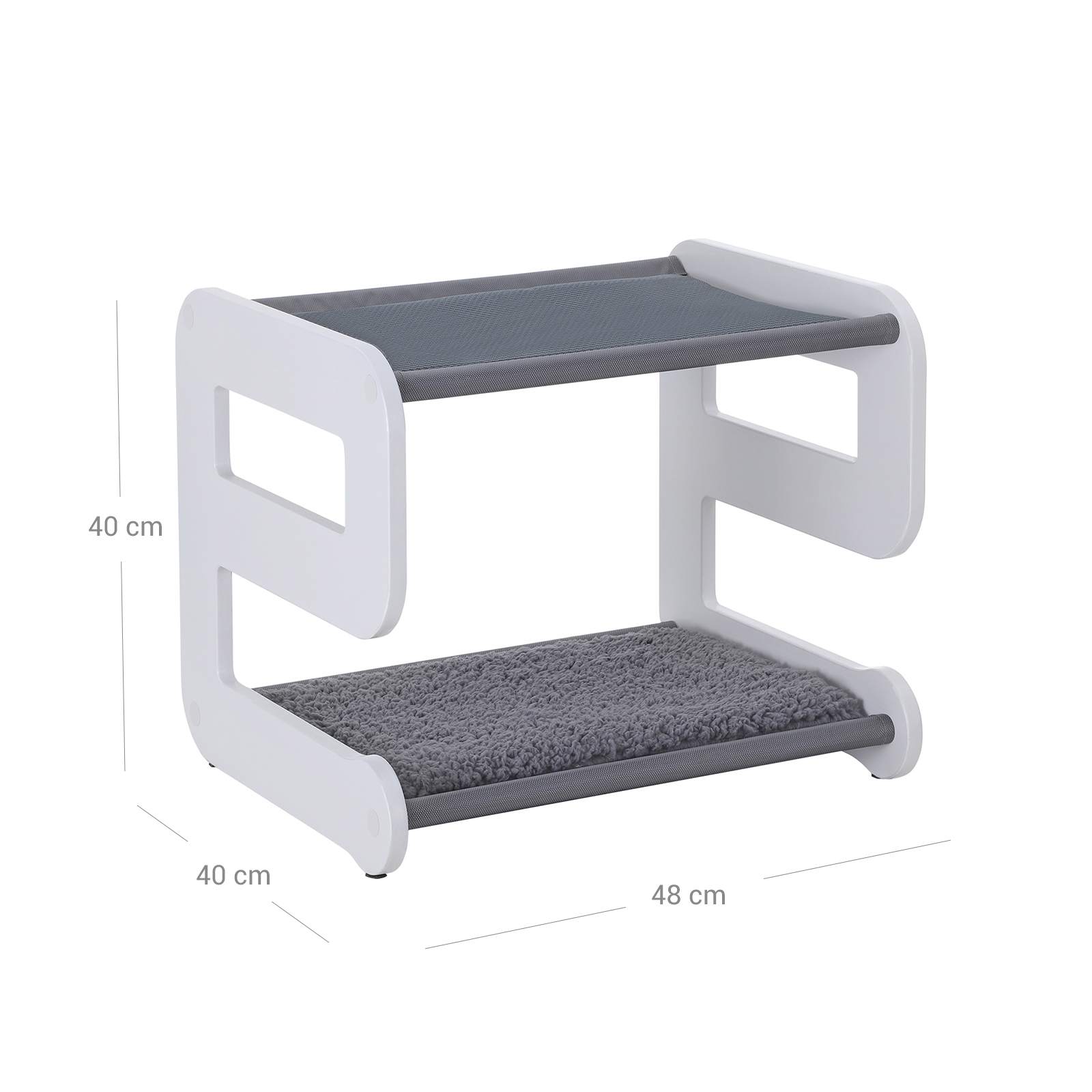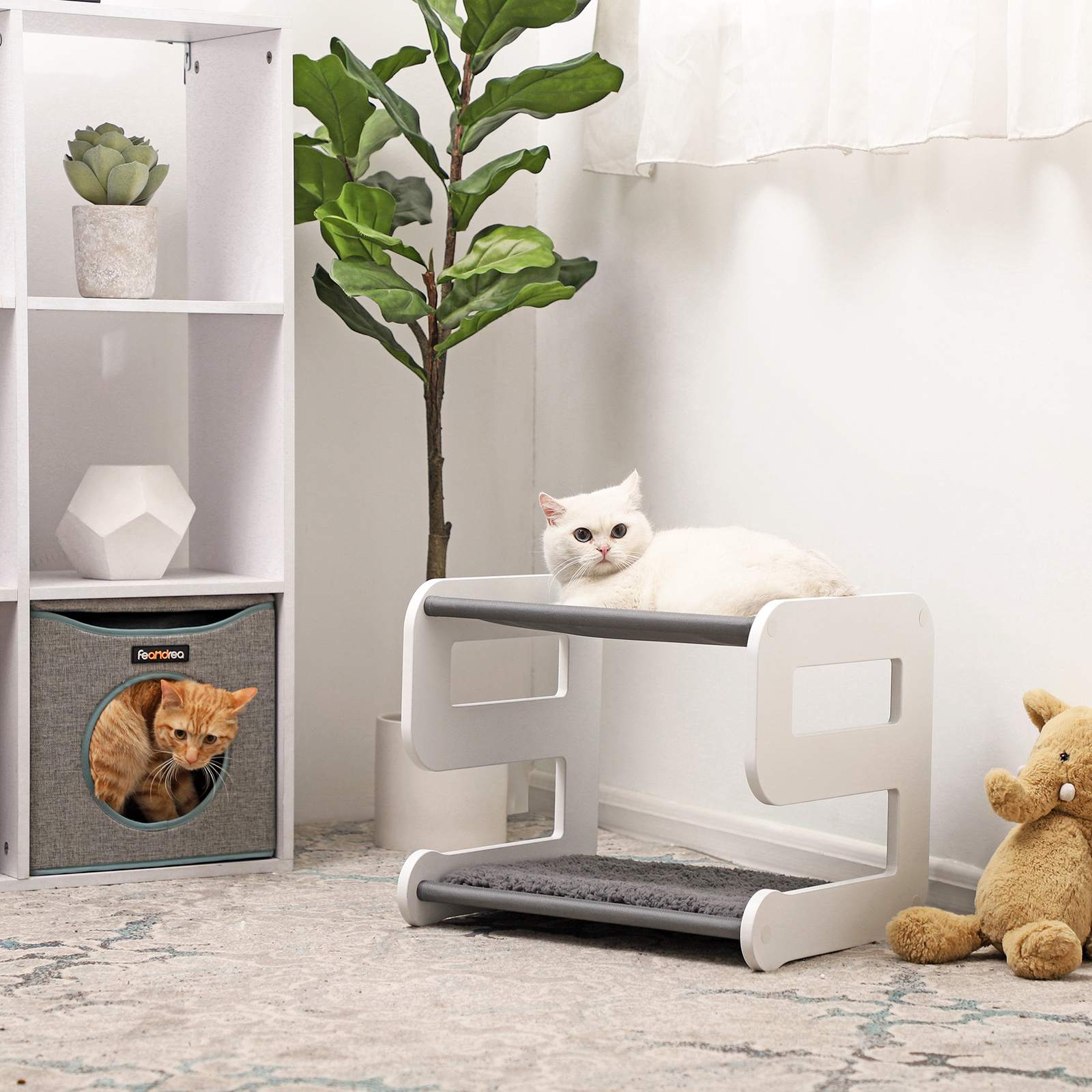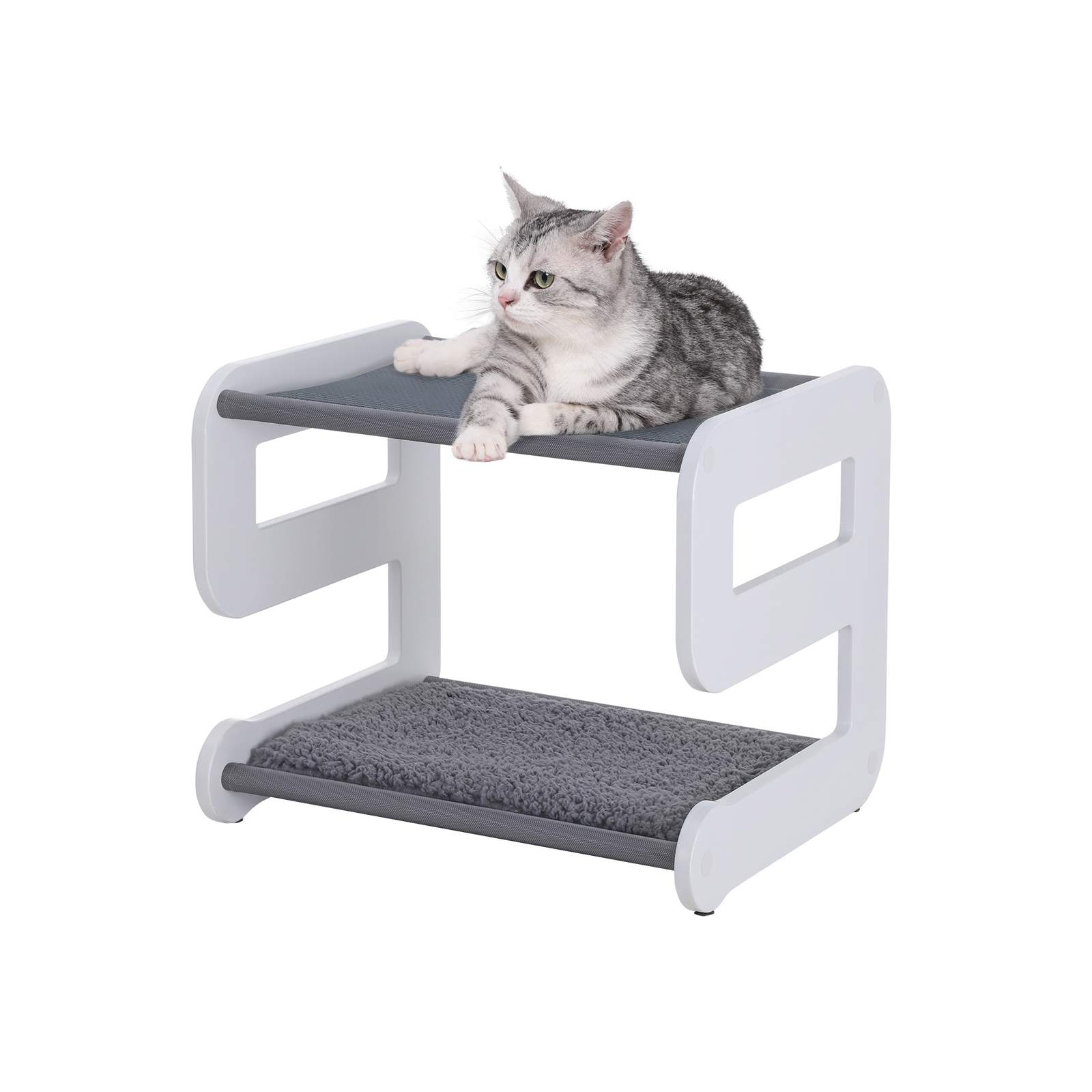 Feandrea kattbädd med 2 stora liggytor, kattmöbler med 2 nivåer, bekväm kattbädd, kattleksak, robust, Oxford-tyg, MDF, 48 x 40 x 40 cm, 9-formad, vit, grå PCB02WG